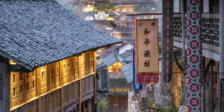 貴州烏江寨國際旅遊度假區位於貴州省遵義市播州區,從2016年烏江寨被列入第四批中國傳統村落保護名錄,到2022年成為烏江寨國際旅遊度假區,這顆黔北遺珠一躍成為「西南旅遊度假新地標」。與星幕共眠,與雨霧同醒。烏江寨國際旅遊度假區集觀光、休閒、度假、康養、會展為一體,環抱5.08平方公里畫卷般的山水美景,以「共生思想」為核心理念,規劃12個街區業態,將歷史文化、自然、環境、人文有機交融,觀光與度假休養完美結合,打造了高顏值、高標準、高品位的旅遊綜合體,讓你從繁雜生活中抽身,重建身心的秩序,翻開一段自在的假日篇章,開啟自由遐想。