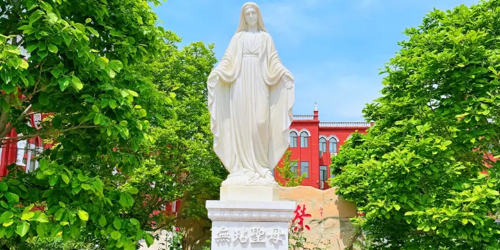 五家莊天主教堂建於1989年,現為唐山教區所在地,俗稱主教府,正名為聖母無染原罪堂,於1988年重建,哥特式建築,教堂正中設大祭台一座,祭台後懸掛木製耶穌苦像,苦像上面聖龕中有聖母全身塑像。兩旁寫有“籲瑪利亞無原罪之始胎,我等奔爾台前為我等祈”字樣。教堂正面排列三個拱形大門,堂脊上豎立耶穌全身塑像,八位小天神和聖母及聖若瑟塑像分列兩旁。在拱門上面的牆壁上設有金色的AO兩個字母系希臘文ALPIIA和OMEGA(啊勒法、歐麥嘎)的縮寫,在這裡是:無始、無終之意。1980年宗教生活恢復以後,在喬屯堂舊址的一角修建了一座簡易教堂。當時唐山全教區也僅剩下劉景和、謝博思、蘭歧山三位老神父管理教務。在1981年12月21日祝聖了劉景和為正權主教。1986年7月為了服從唐山建設規劃,教堂從喬屯遷出,暫時在路南老十中過宗教生活。後來市政府在路北五家莊街撥給土地12、9畝,先後撥款50多萬元,從88年4月動工至1993年,先後建成教堂和附屬建築。