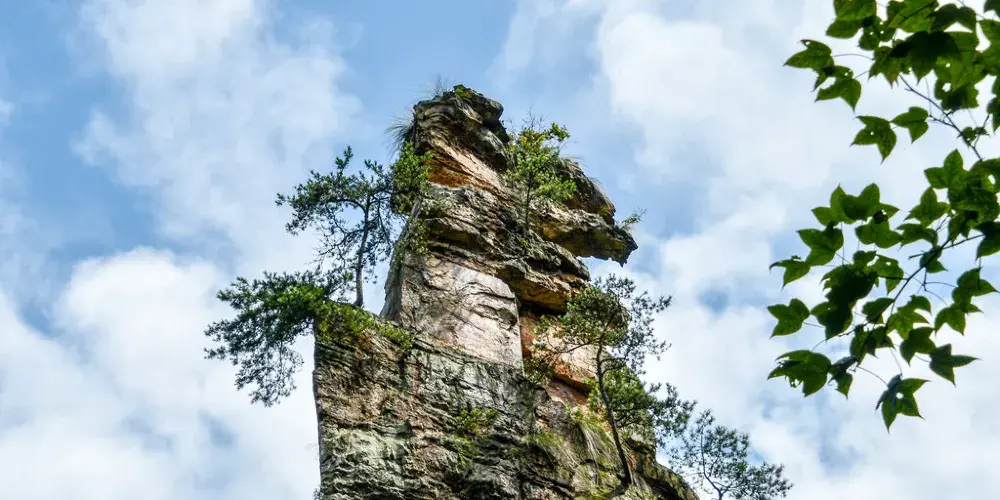 烏龍寨是楊家界景區內重要景點,原名“黑龍寨”,是湘西土匪居住的地方,後根據電視劇《烏龍山剿匪記》而更名。這裡也是楊家界中極為險峻的地方,山寨依山而建。去到山頂必須經過三道“鬼門關”,分別為一道“一步難行”、二道“誰敢不低頭”和三道“一夫關”。山路崎嶇難行,天然的屏障攔於路中,除了險要的山路,烏龍寨的風景也是絕美,站在山頂風景頗為開闊,奇峰異石,而這裡的石林排列有序,像是列隊的士兵,氣勢非凡。