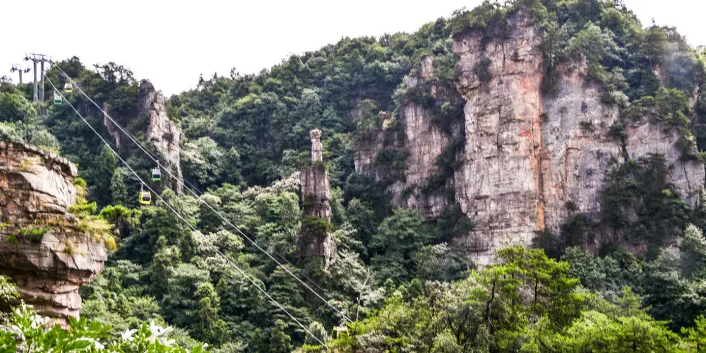 楊家界位於張家界森林公園西北部,東面與袁家界景區相連,主要以原始風光自然美為主,特色在於一個“險”字,山高路窄。景區內知名的三大景點為:烏龍寨、天波府和一步登天。烏龍寨是個神奇的地方,以前是土匪居住的地方,地勢險要;過了烏龍寨,就是天波府,有多座天然石牆,高矮參差不齊,場面壯觀;一步登天有鐵梯可登峰頂,峰頂平坦。