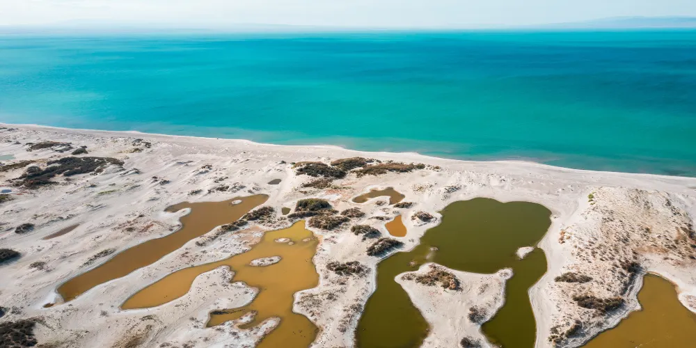 烏倫古湖(黃金海岸景區),是具有海洋特性和地貌多樣性的濃縮旅遊地。黃金海岸景區是烏倫古湖景區重要的組成部分。烏倫古湖水域面積達1035平方公里,由布倫託海(大海子)和吉力湖(小海子)兩部分組成,而黃金海岸景區則位於烏倫古湖大海子東岸,銀色沙灘綿延十幾公里,夏季湖水温度保持在20℃左右,沿岸有近100米長的天然淺水灘,享有“新疆第一海濱”的美譽。景區內還設有魚宴餐廳、旅遊商品中心、洗浴更衣儲物室、冷水魚燒烤區等。此外,景區還創新開展了“夏天裡的海上嘉年華—水上闖關”,開通了遊船鳥島航線、七彩大堡礁航線、湖心遊航線及海上升空傘、海上嘉年華、摩託艇等項目。黃金海岸景區離福海縣城衹有22公里,是通往喀納斯景區、可可託海景區的必經之路,交通優勢明顯,改造後的黃金海岸景區煥然一新,無論是景區內新的遊客服務中心,還是湖面上的步道、遊船都將為遊客帶來全新體驗。