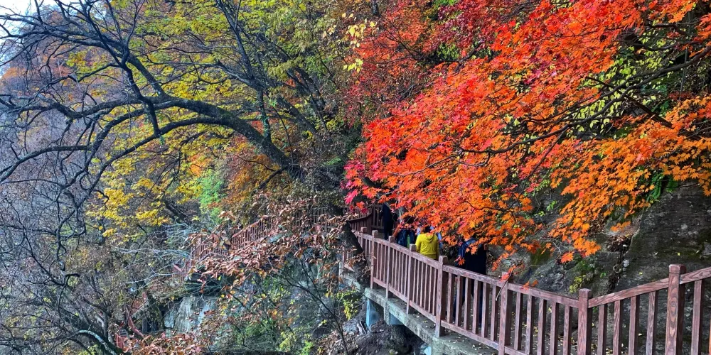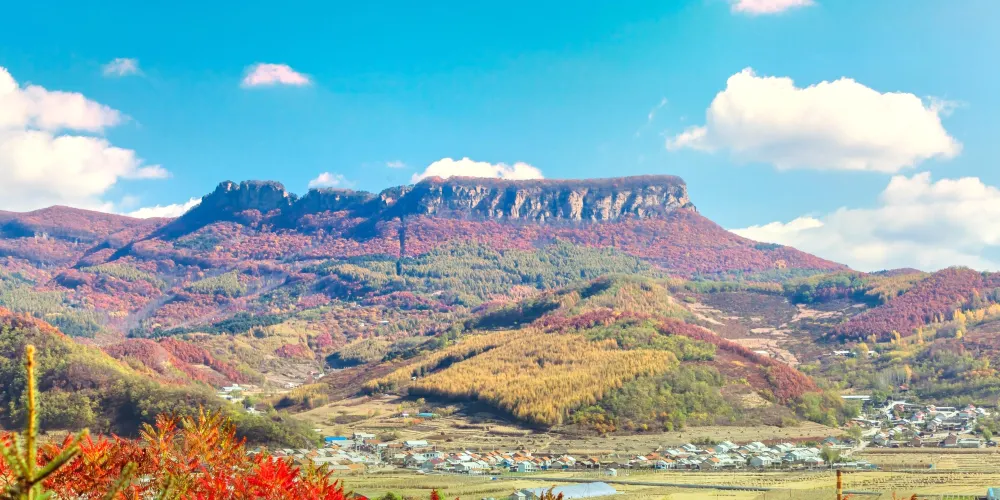 五女山位於桓仁滿族自治縣桓仁鎮北側,相傳有五女屯兵其上,因此得名。這裡曾是高句麗民族開國都城,作為高句麗王城之一,桓仁五女山山城與吉林省集安市的高句麗遺跡一起被列入《世界遺產名錄》。五女山景色秀美,一線天深處31米,窄處0.65米,站在其中向上仰望僅為一線藍天。還可登太極亭憑欄遠眺,可以看到桓龍湖盤旋在腳下,景色十分壯美。