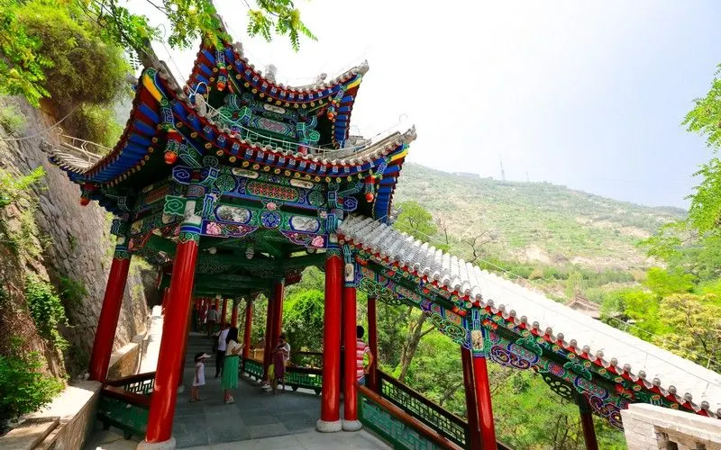 白雲觀山門額雕“升雲得路”,門楣懸鄧寶珊所題“白雲觀”木匾。觀內供奉有呂洞賓的塑像,有東西望河樓、戲樓以及前、中、後院等一組三進的建築群,兩側為雲水堂、鐘鼓樓、道院等。後殿有花園、八仙閣瀟灑軒、鶴鹿亭、來仙亭、聚仙亭、群仙樓等建築,古香古色,道教風格濃鬱。