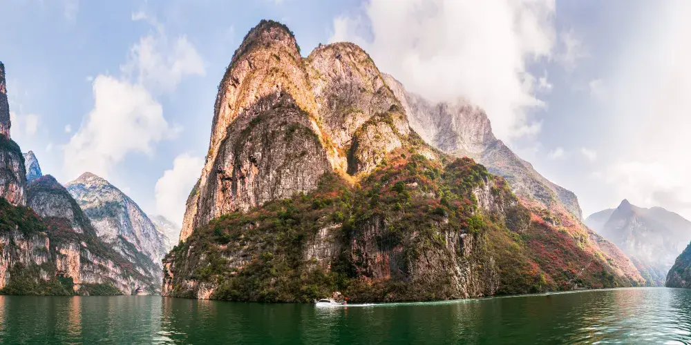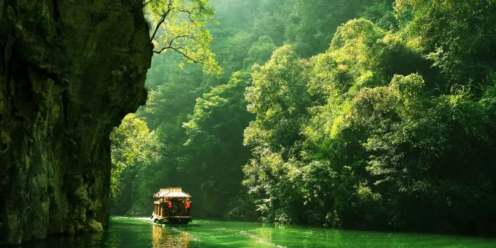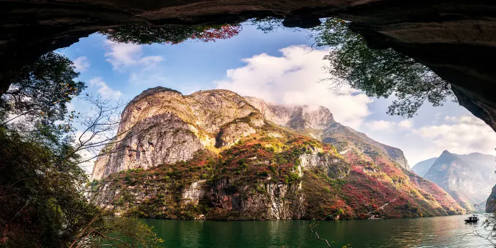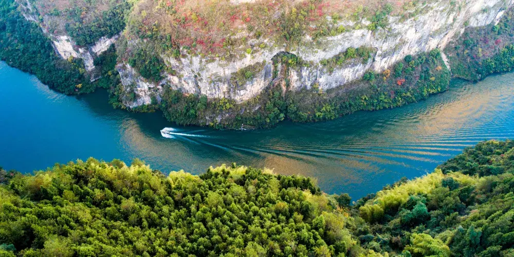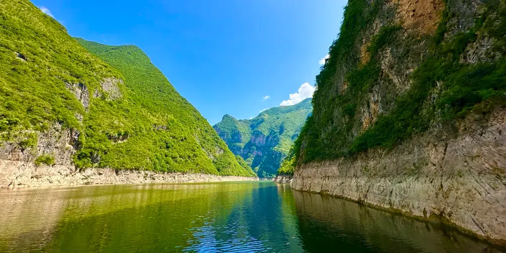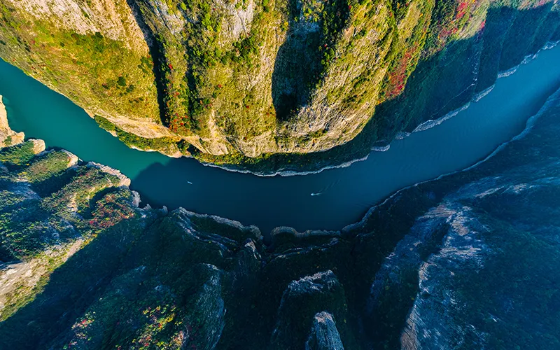 巫山小小三峽因其水道更為狹窄,山勢顯得尤為奇峻,峽谷愈發幽深而得名。小小三峽內,奇峰多姿、山水相映、風光旖旎,兩岸懸崖對峙,壁立千仞,河道狹窄,天開一線,透露出遮擋不住的山野誘惑。山岩上倒垂的鐘乳石,奇形怪狀,形態各異,散發著原始古樸的氣息。舟行其間,夾岸風光無限,滿目蒼翠,甚為美觀,令人惟有返璞歸真、擁抱自然。