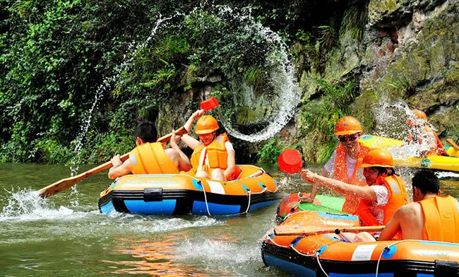 五台龍灣峽生態漂流項目利用峽谷內的龍灣河開發而成,龍灣河由北向南貫穿於龍灣大峽谷內,河道隨着峽谷蜿蜒迴旋,6.5km河道落差達130多米,河水由龍灣內近百個泉眼匯流而成,水質優良、清澈見底、四季長流,自然水量便可達到漂流需要,可隨到隨漂