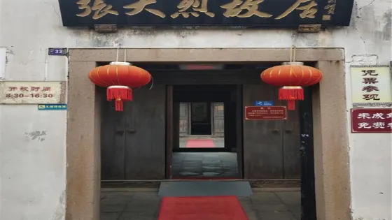 則評價張大烈故居,鄉民俗稱張氏故居為“黃石山牆”。故居始建於清鹹豐末年(1860年)。現存建築羣佔地總面積2128平方米。其中廳房建築面積1176平方米,庭院面積951平方米。故居坐西朝東,由正廳房和南北偏房三部分構成。正廳房在一條中軸網上建成五進四個庭院,石庫門框,釘着銅釘的黑漆大門,大門朝東。廳門前四進是五開間七步七架,後進是六步六架三連間大廳。在第三、第四進庭院中,有南北相對的小側廂4間。