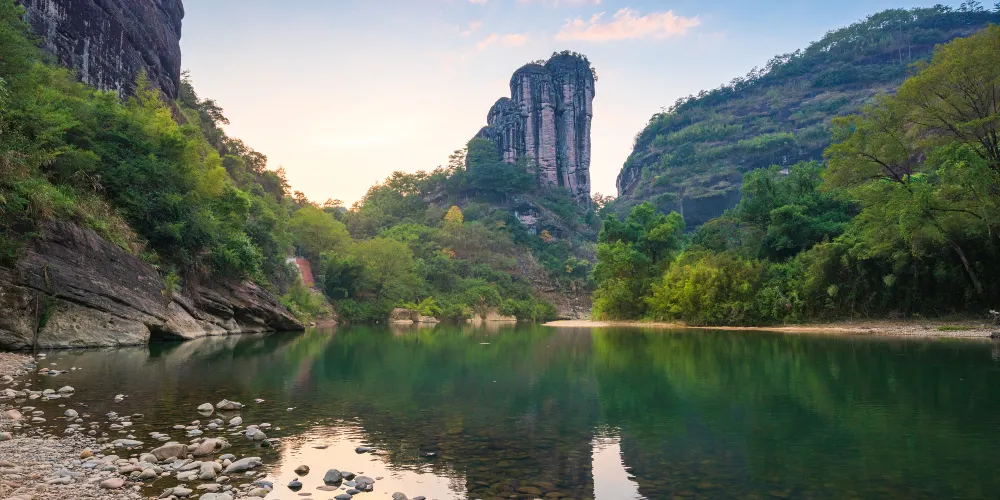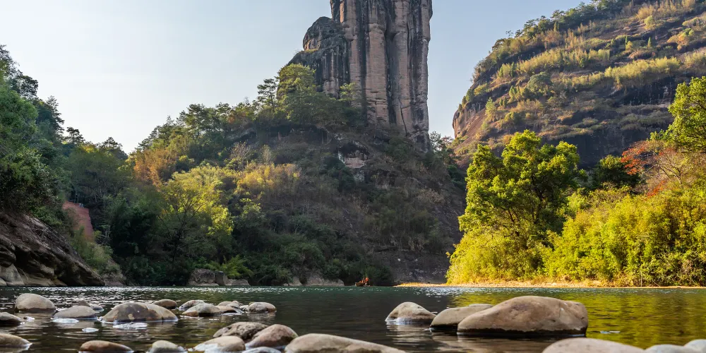 武夷大峽谷所在的位置是一條著名的科考旅遊路線,早在一百五十多年前它在國際科教界就名聲遠揚,大量生物新種在這裡發現,被稱為「生物模式標本產地」。此處能觀看壯闊V形谷,也能眺望翠綠竹海,聆聽樹葉沙沙作響中,亦能尋找我國特有的第三紀孑遺珍稀物種-鐘萼木。