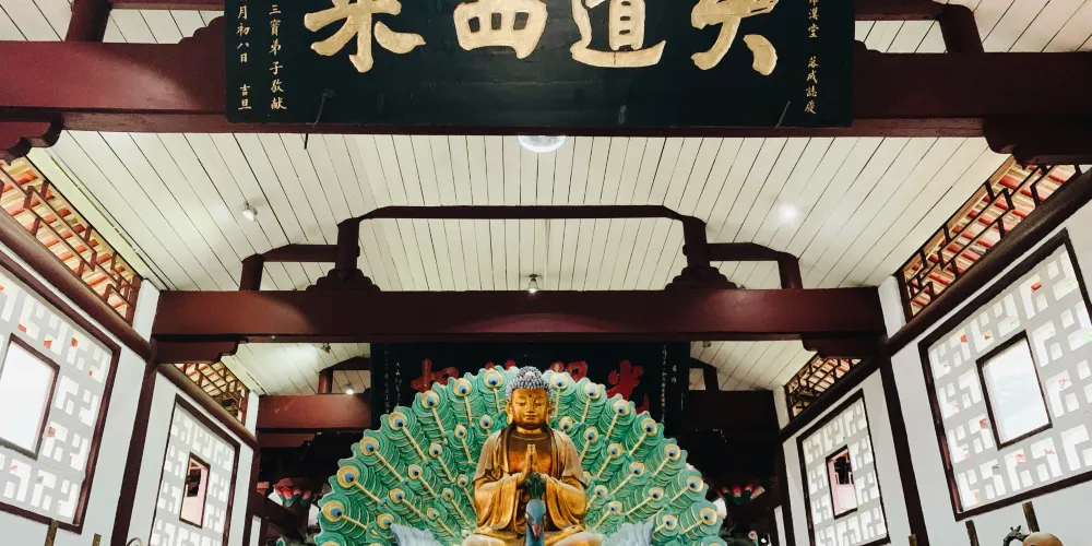 烏尤寺位於四川省樂山東的沫水(大渡河)、若水(青衣江)和岷江匯合處的烏尤山頂。始建於唐至德——乾元年間,原名正覺寺,宋代改名烏尤寺。寺內建築結構森嚴,殿宇共有七座,都集中在烏尤山頭,現保存完整的殿宇有天王殿、彌陀殿、彌勒殿、大雄殿、觀音殿、羅漢堂等。由前殿西行還有怡亭和爾雅台等勝跡。爾雅台是漢代文學家郭舍人在烏尤山注釋《爾雅》的地方。寺之周圍竹木扶疏,樓閣亭台錯落其間,更顯得格外清幽。