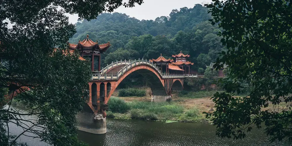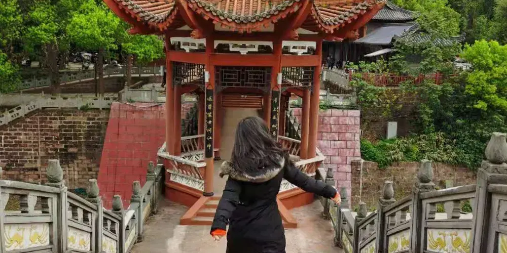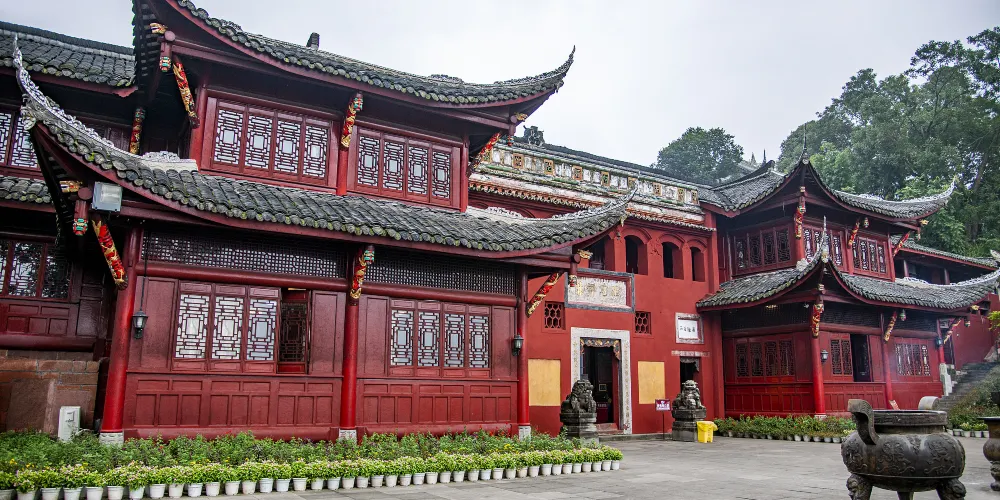 烏尤山即古離堆,相傳為秦孝王時蜀郡守李冰開鑿,以“避沫水之害”。烏尤山同淩雲山一樣,自唐以來就是蜀中遊覽勝地。它四面環水,孤峰兀立,山上林木茂盛,綠蔭重重。烏尤山因孤臥江中,好似一頭烏牛,故又名“烏牛山”,相傳宋代詩人黃庭堅至此,嫌其名不雅,而見山上古木繁蔭,便更名“烏尤山”。