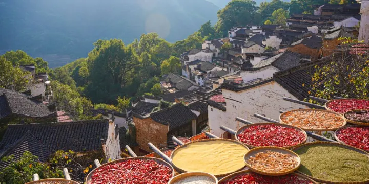 立秋一到,篁嶺古村就成了一個天地曬場。來曬秋人家賞紅楓,欣賞屋頂曬秋,楓林盡染,體驗民風民俗,手搖風車、套南瓜等,感受曬秋人家的鄉愁韻味。