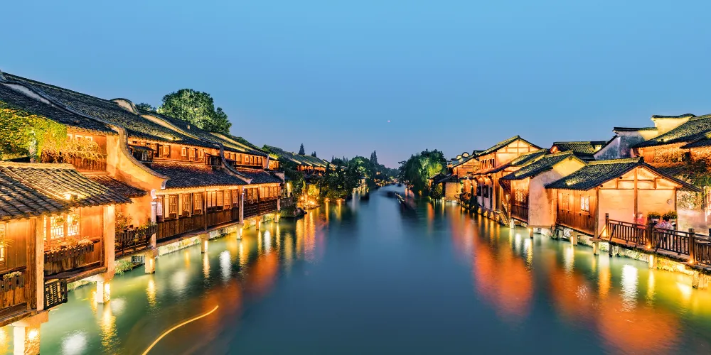 西柵是烏鎮的精華所在,這裡比東柵更加精緻、恬靜。典雅的老建築依水而建,典型的江南水鄉小橋流水景緻,街頭巷尾的咖啡館、小店,充滿了文藝情懷。乘搖櫓夜遊西柵是很值得推薦的體驗,燈影槳聲裡的江南水鄉分外迷人,讓人陶醉。