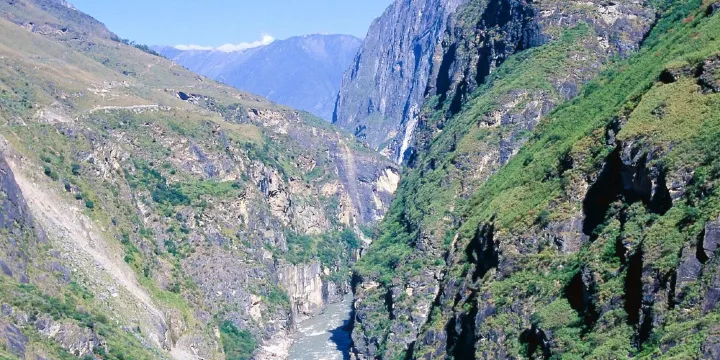 虎跳峽位於中甸東南部,距中甸縣城105公里,距長江一灣35公里,分為上虎跳、中虎跳、下虎跳3段,共18處險灘。江面窄處僅30餘米,江水被玉龍、哈巴兩大雪山所挾峙,海拔高差3900多米,峽谷之深,位居世界前列。從中虎跳過險境“滑石板”,即到下虎跳。下虎跳有縱深1公里的巨大深壑,這裏接近虎跳峽的出口處,是欣賞虎跳峽好的地方。在雲南省麗江境內進入虎跳峽,應從麗江縣的大具鄉進入,這裏實際上是虎跳峽的下虎跳地段。一般遊客去得多的是上虎跳。中虎跳因為險峻,少之。下虎跳更少,大具鄉可能很多人都沒聽説過。
