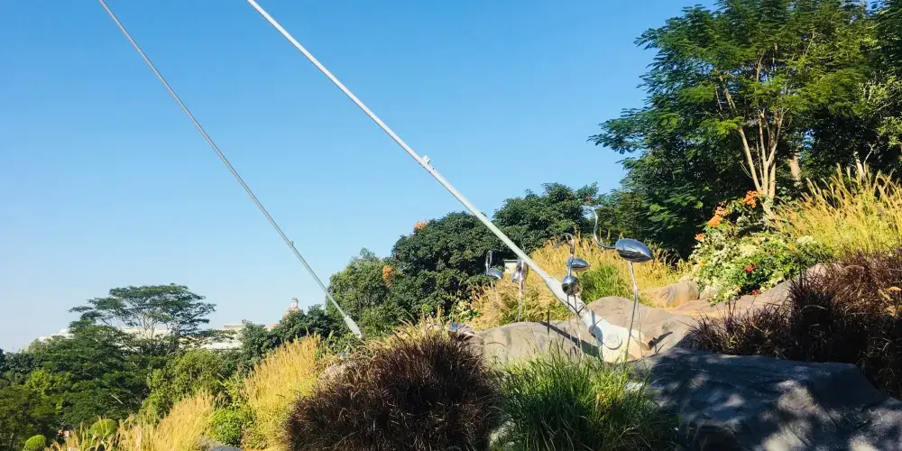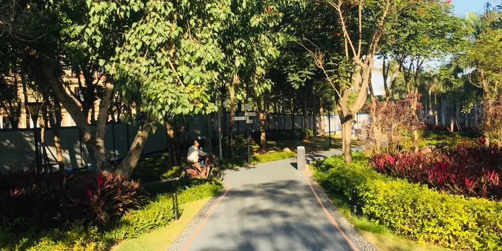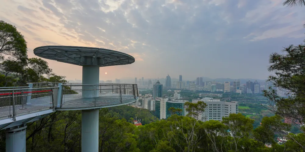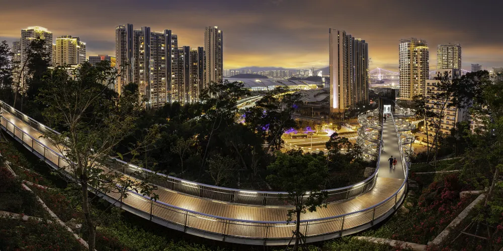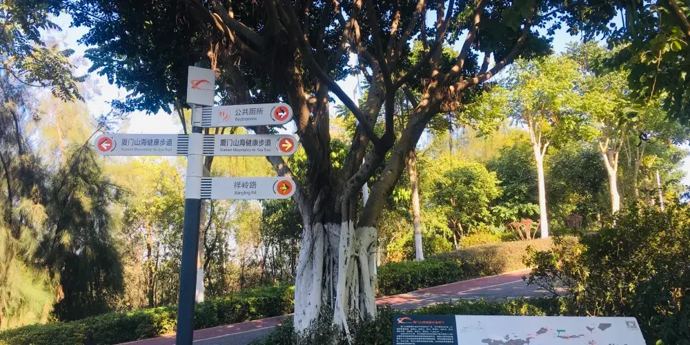廈門山海健康步道全長約23公里,起於郵輪碼頭,止於觀音山夢幻沙灘,沿線有金山、湖邊水庫、五緣灣等“八山三水”。該步道不受地面車輛交通影響,穿越城區高密度居住和商業區,將城市景觀與自然風景銜接起來,形成一條山海步行通廊。廈門山海健康步道依山就勢,因勢利導在設計和施工時,儘量保留原有植被,彰顯自然野趣。步道全線設定了16個景觀打卡點、12個特色景觀園區,還有多個觀景平台。站在健康步道上能欣賞仙岳山,攬懷五緣灣點點白帆,遍閲鷺島八山三水美景。