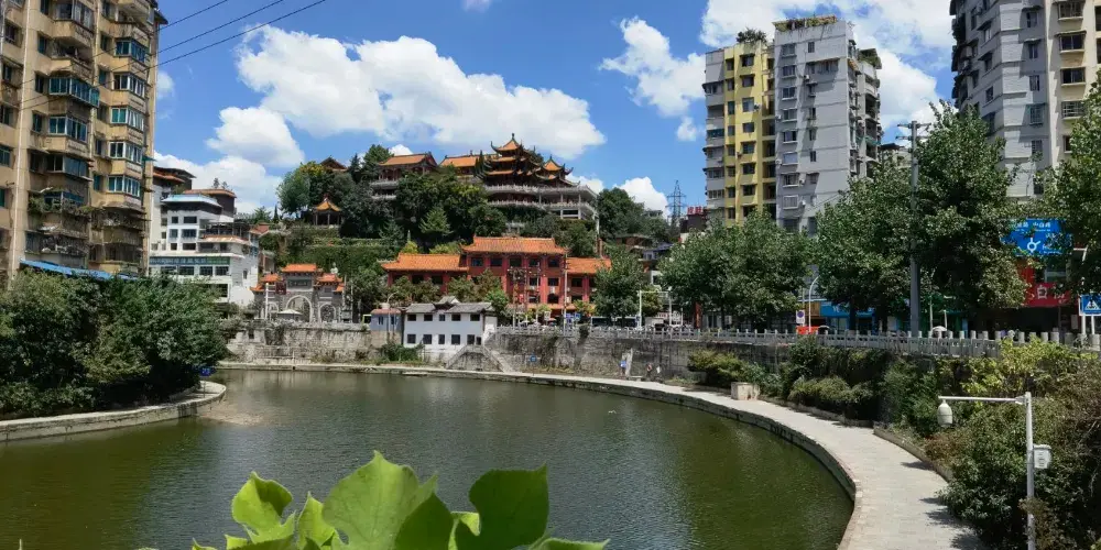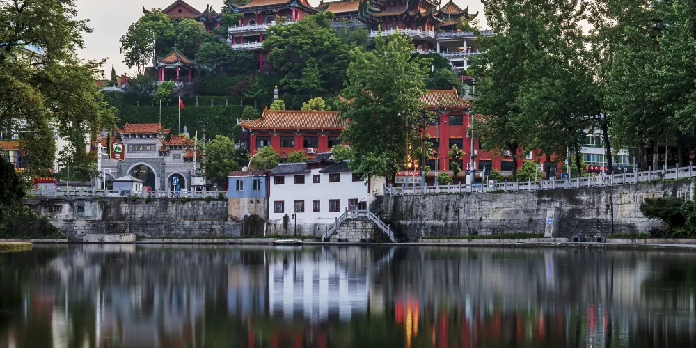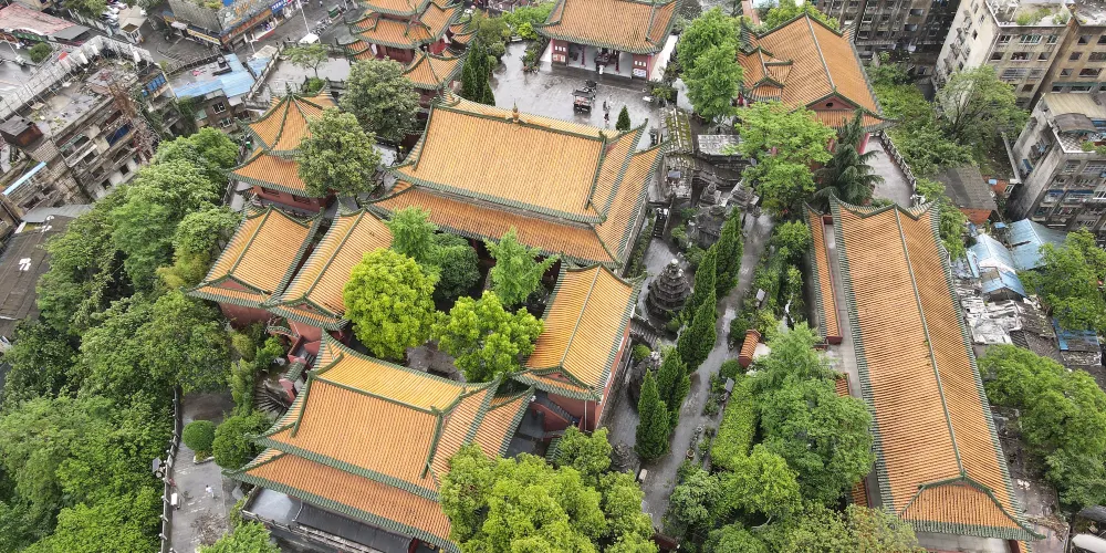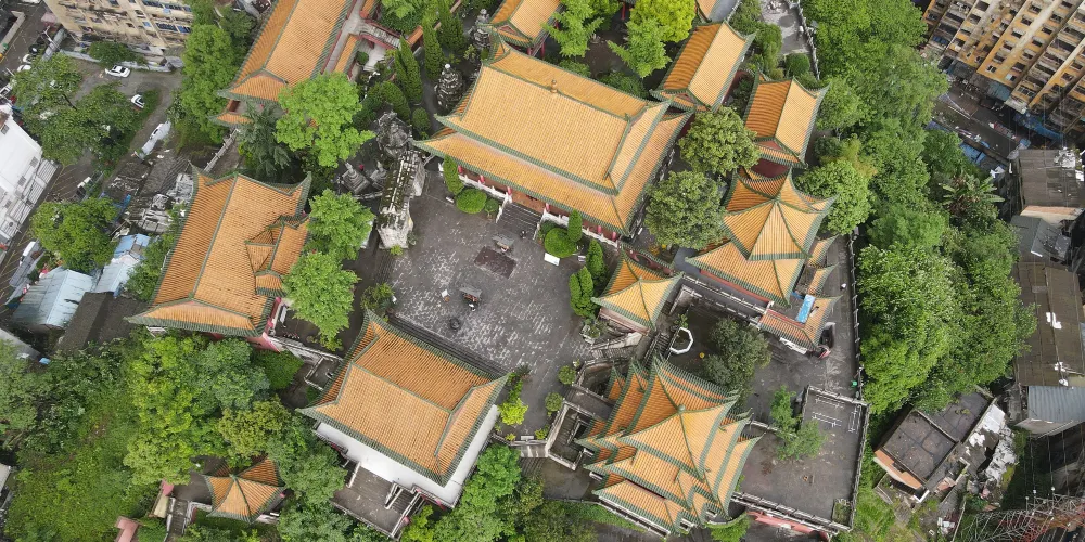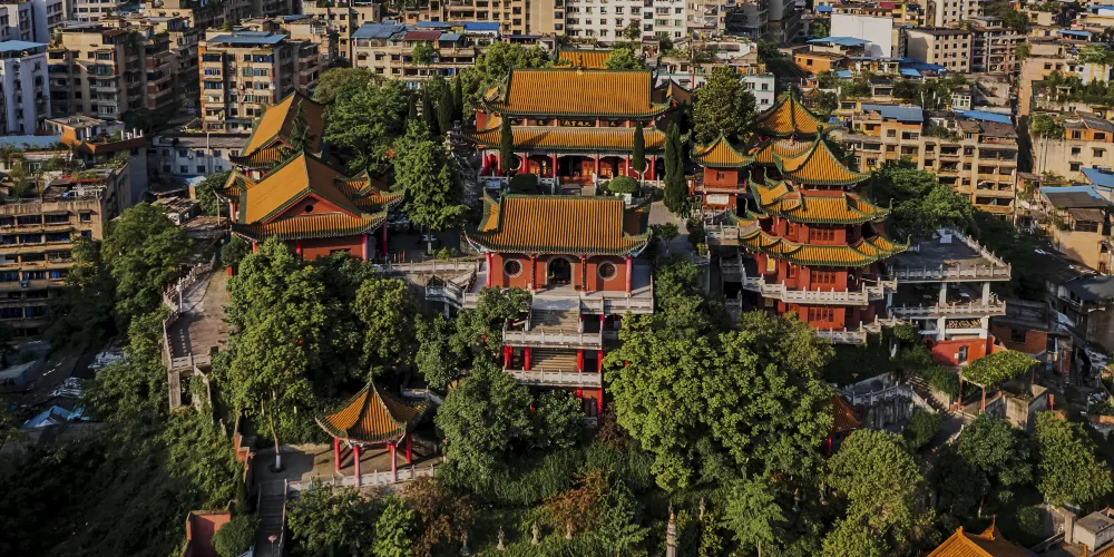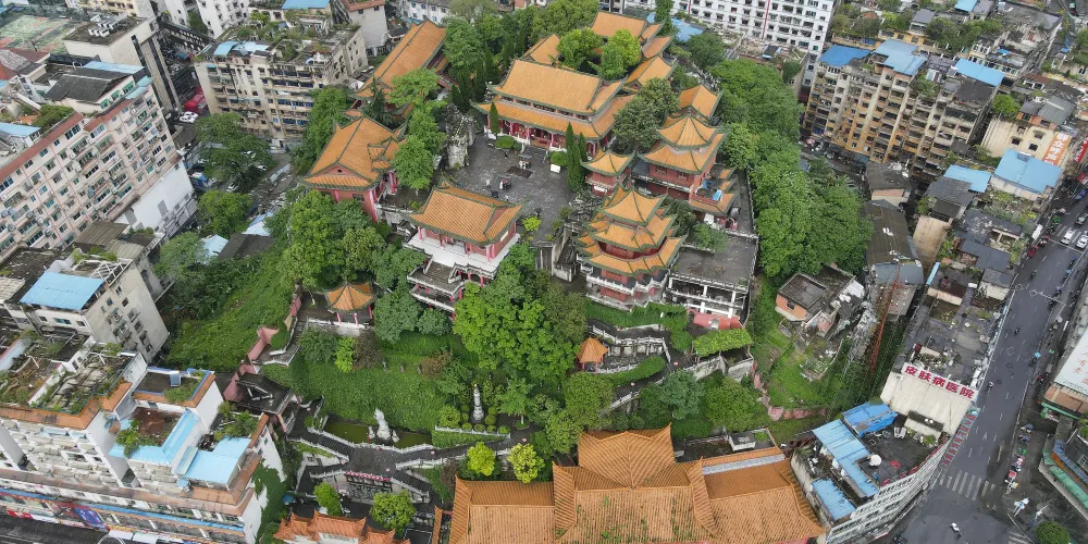 湘山寺始建於唐代宗大歷年間(766-779年),寺廟被群山環抱,風景優美,規模比較大,是黔北佛教中心,也是一處幽雅秀麗的千年古剎。寺內佈局疏密有致,結構嚴謹有法,紅柱金頂,工藝精湛。中軸線上有天王殿、大雄寶殿等三座殿堂。其中遵義湘山寺大雄寶殿是湘山寺的主殿,也是寺內比較大的殿堂。殿前有寬闊的月台,殿頂樑架構造雄偉,殿內斗拱形制多樣,是一處具有民族傳統的木構建築。