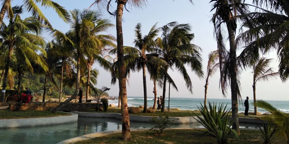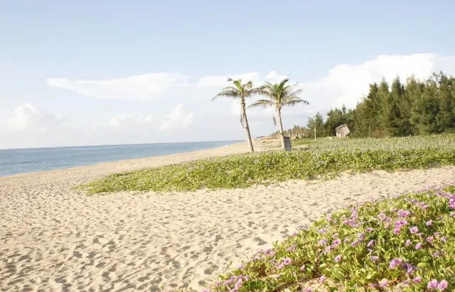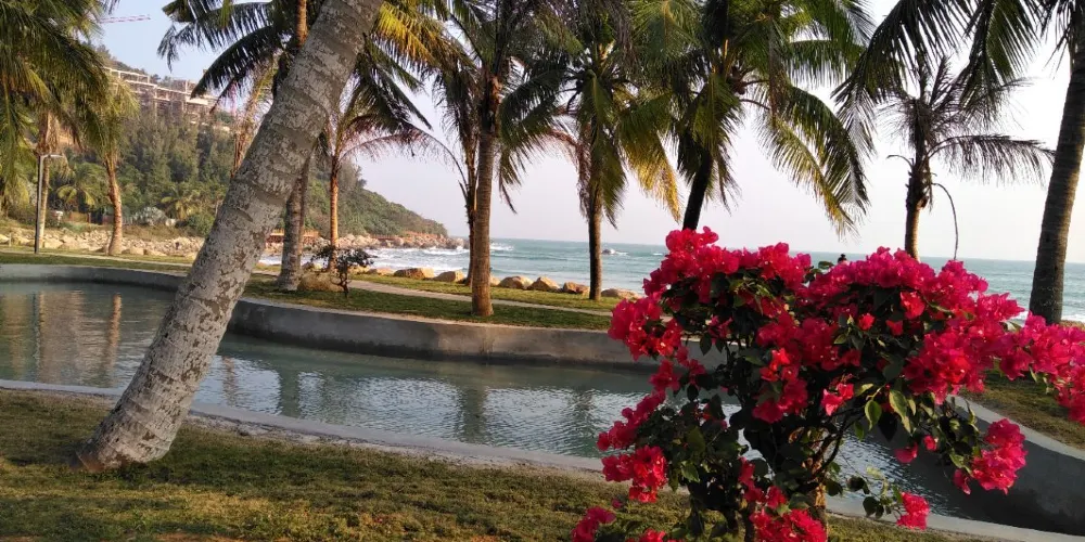 椰子島位於陵水縣城的東部約5公里處,地處陵水河的出口處,是一座面積僅有1平方公里的小島。島上椰林密布,景色自然脫俗,目前為止仍是一處沒有開發的原生態島嶼。椰子島上的椰子樹幾乎棵棵神姿仙態,在島上很難找到幾棵形態相似的椰樹。椰子島雖然很小,但隨意在小島上走走,聽聽海風掠過樹葉的摩挲聲,去小沙灘上踏踏海浪,彷彿置身於世外桃源。