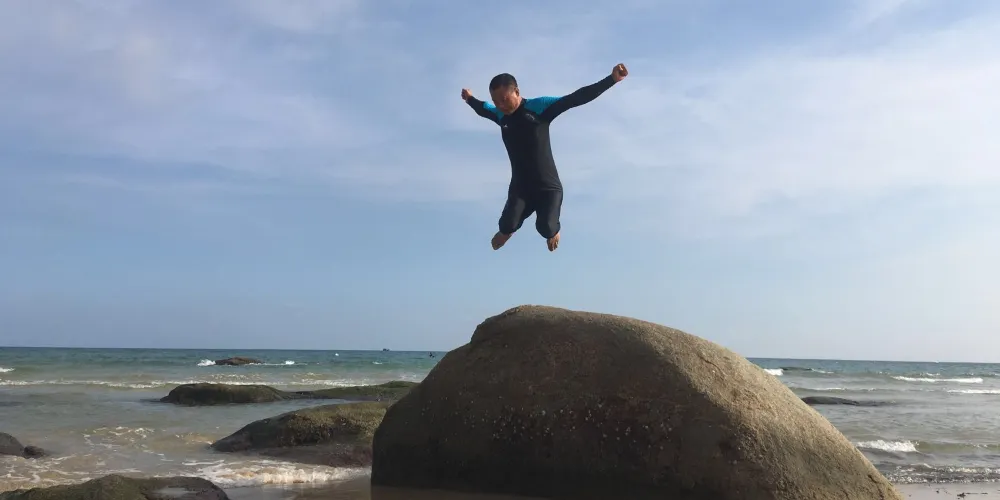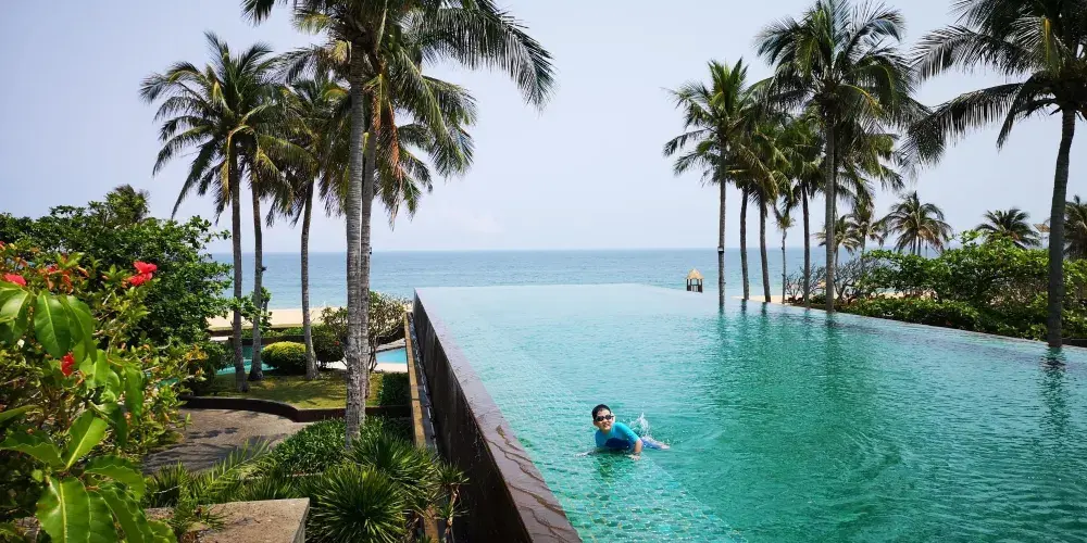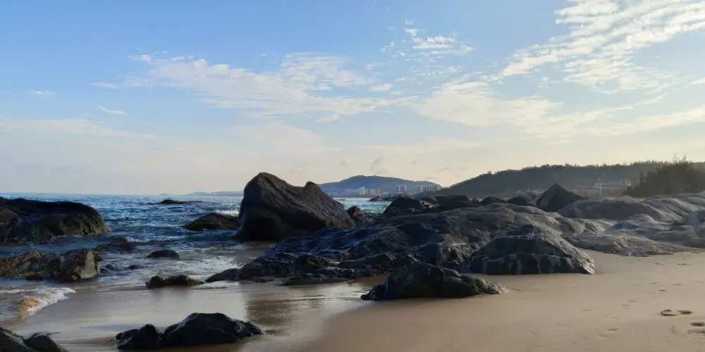 香水灣位於海南島南北氣候分界嶺牛嶺腳下,陵水縣東部,因香水嶺流來的泉水注入海灣而得名。如今這裡依然保持著原生態的海濱風光,踏入香水灣,首先看到的是青翠的椰林,再就是的銀色沙灘,沙子細膩柔軟乾淨,這裡較為僻靜,沿著海岸線走著,可以很清晰的聽見浪花聲。站在海邊可以看到分界洲島,海水能見度非常高,景色優美值得一去。