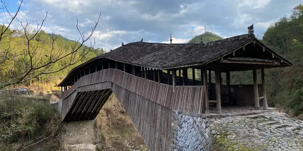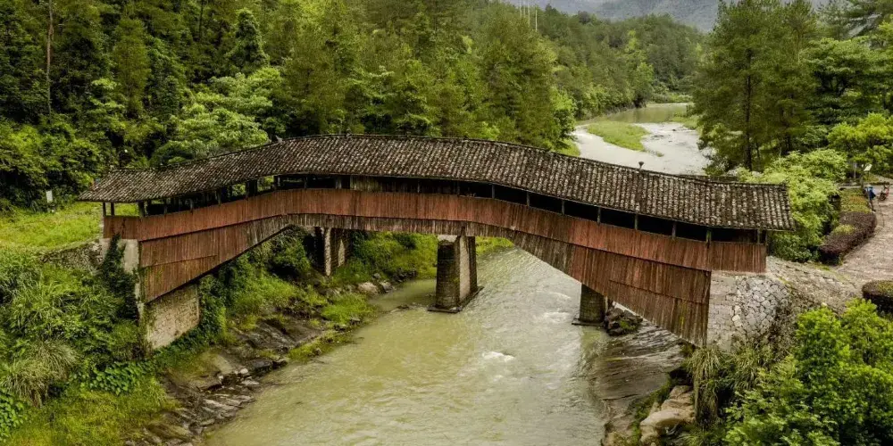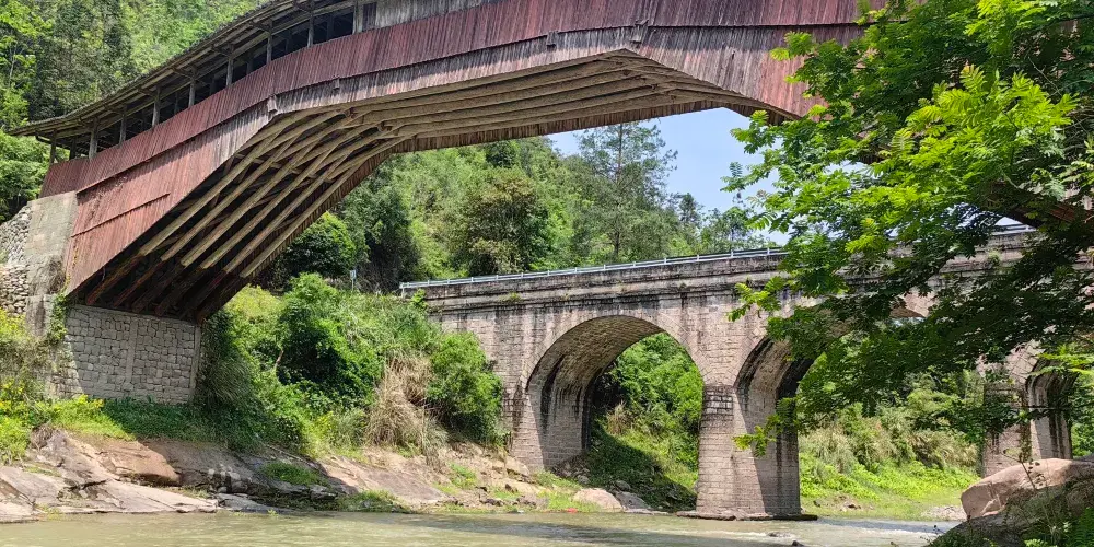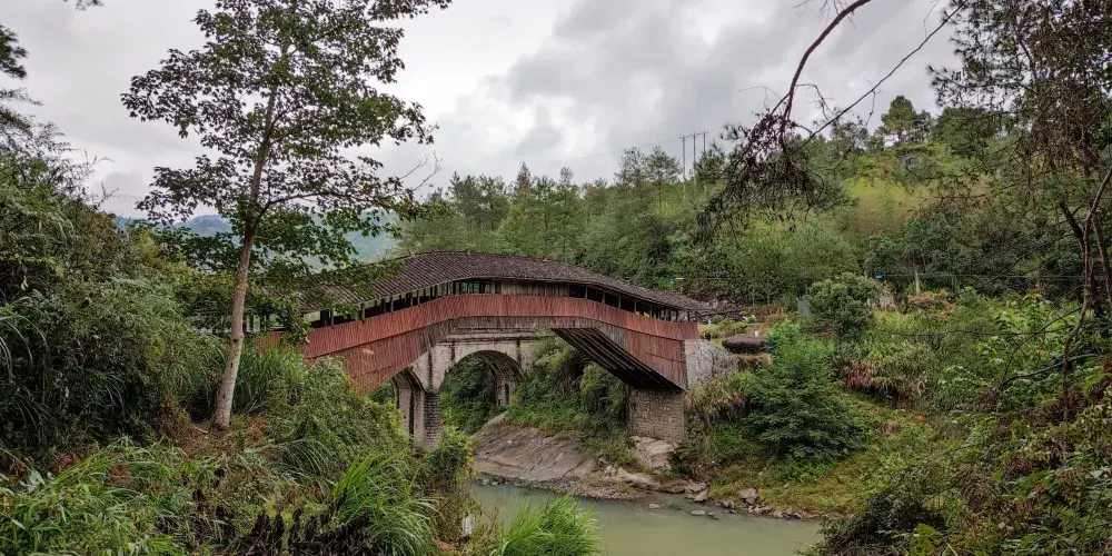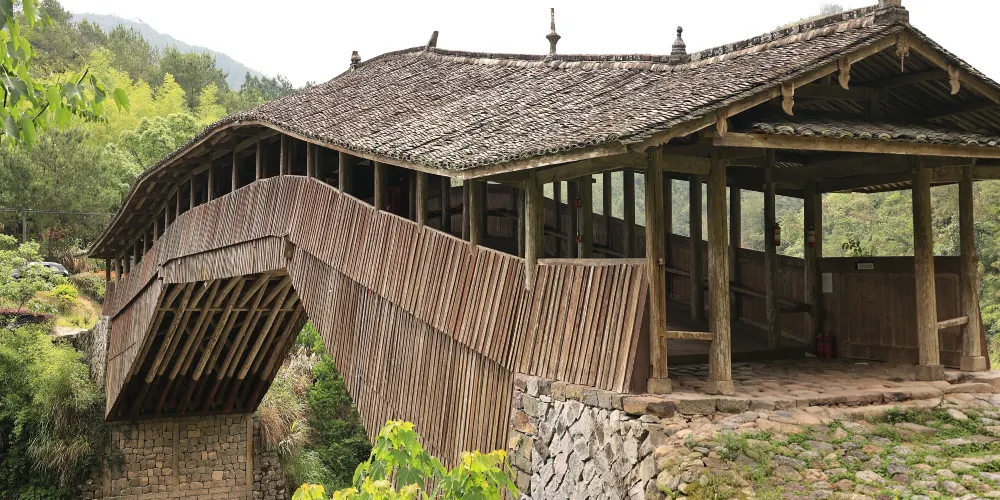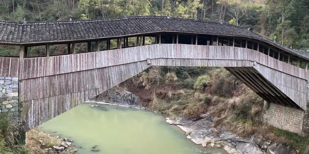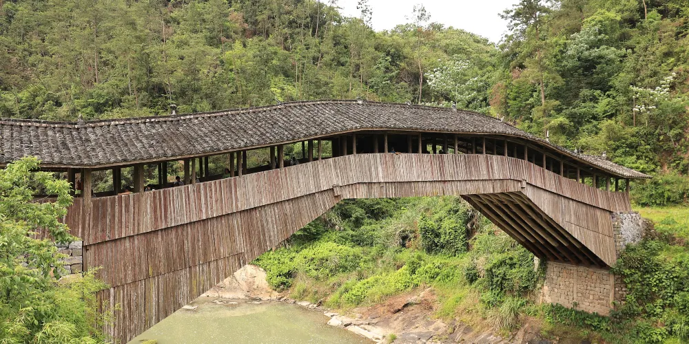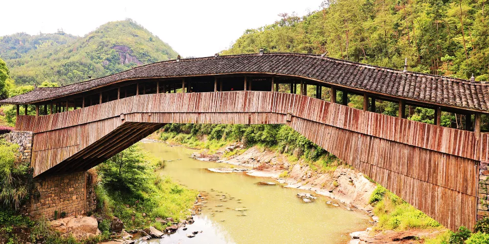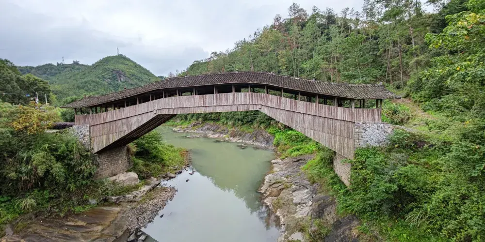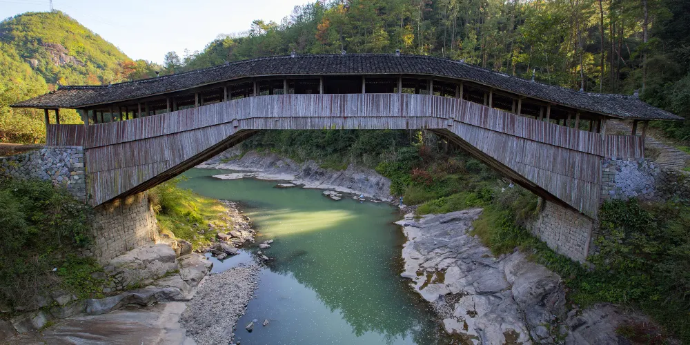 仙居橋位於泰順縣仙稔鄉仙居村,是著名的泰順廊橋之一。橋創建於明景泰四年,歷史上多次被洪水沖毀,也多次重建。現在我們看見的仙居橋為康熙十二年建造的,為平孔木拱廊橋,至今已有三百多年的歷史。仙居橋有十八間橋屋及八十柱單簷。
