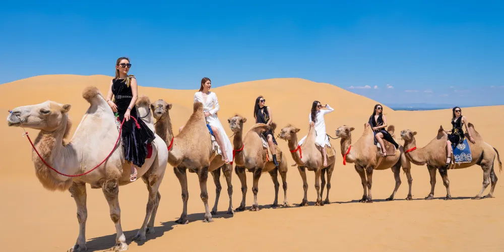 中國沙漠度假地——內蒙古.響沙灣是集觀光與休閑度假為一體的大型綜合型的沙漠休閑景區,地處中國第七大沙漠——庫布其沙漠東端,是中國境內距離內地及北京較近的沙漠旅遊勝地,是國家AAAAA級旅遊景區,國家文化產業示範基地。擁有超過500峯的駱駝隊。