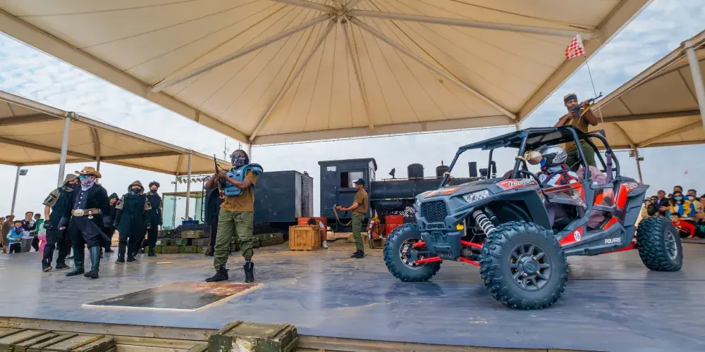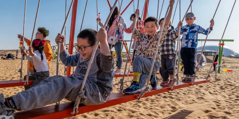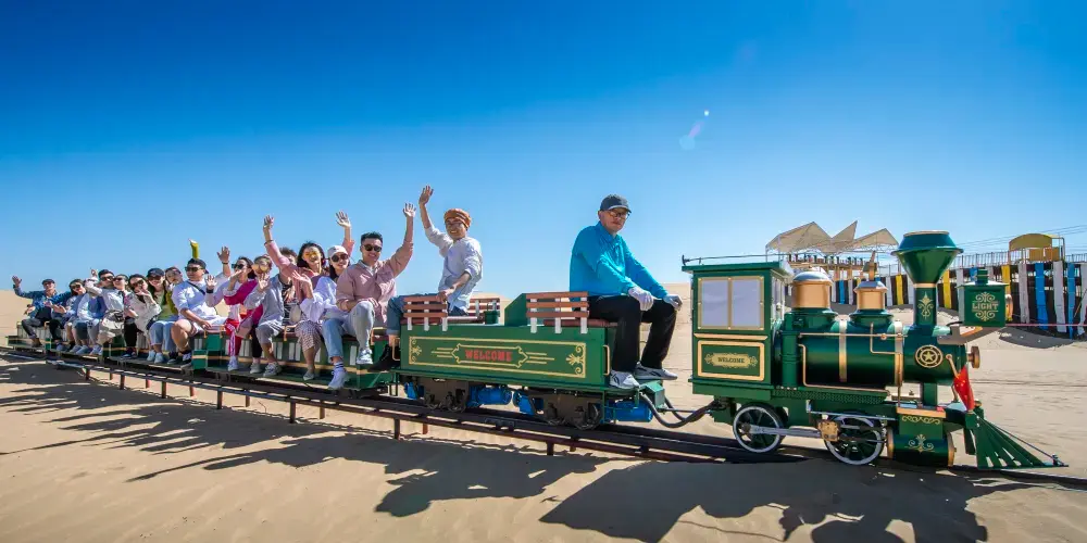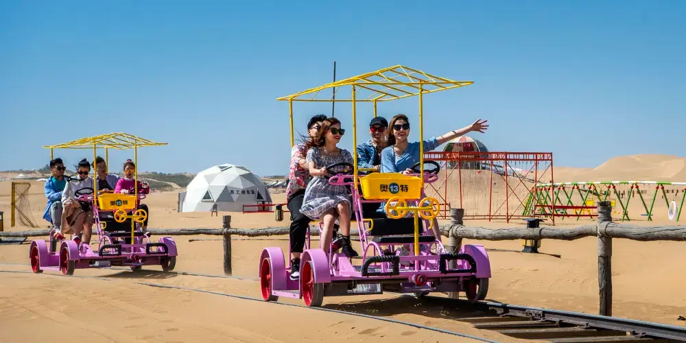 結合沙漠地形開發了滑沙、沙漠摩托、駱駝騎行、高空滑索等刺激項目,適合尋求冒險的遊客。