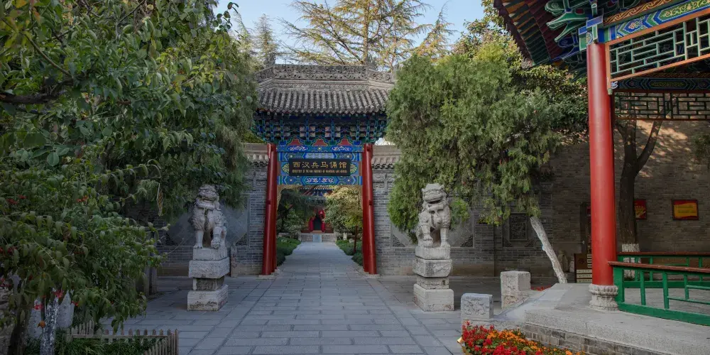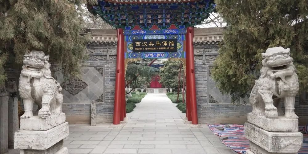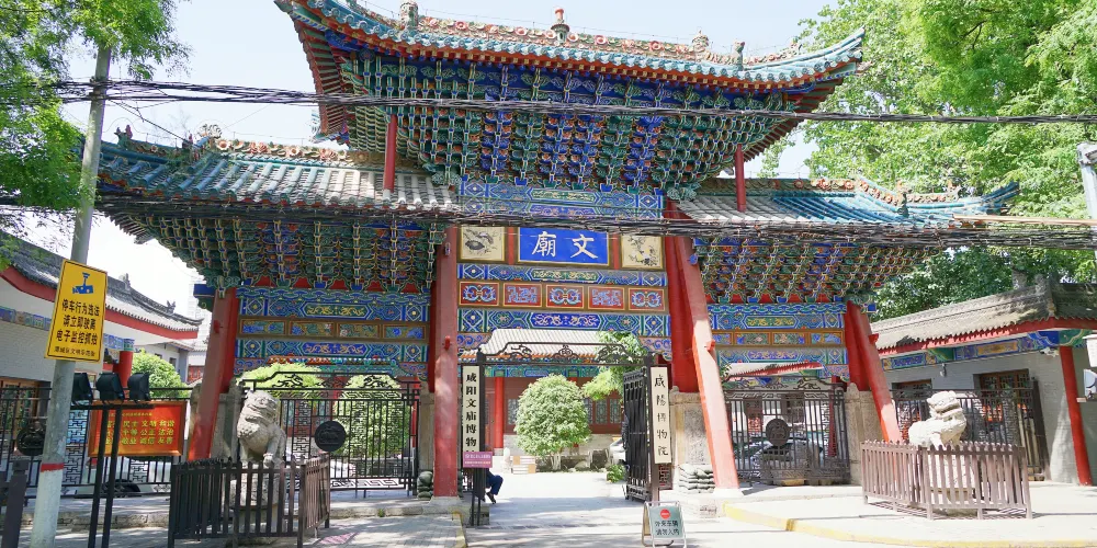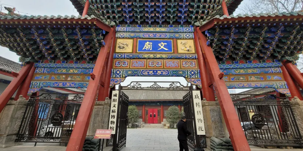 咸陽博物館位於咸陽市中山街中段,館址為明代(1371年)所建文廟,四進院落,座北面南,主要建築有牌樓、獻殿、大成殿、小牌樓、偏院正殿等,為國家重點文物保護單位。咸陽博物館現有七個陳列室,其中咸陽曆史文物陳列室三個,西漢帝陵文物陳列室一個,西漢彩繪俑陳列室二個,還有一個是臨時陳列室。館內所藏文物以秦漢兩代為主,是研究秦漢歷史文化的寶貴資料。
