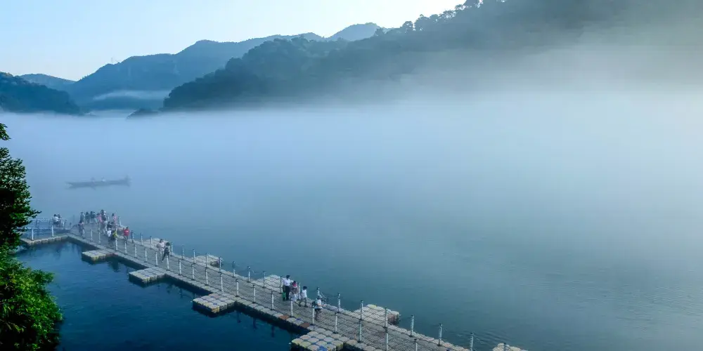 小東江觀霧棧道是在小東江看霧和漁夫撒網的好位置,棧道設置在江邊,可以邊漫步邊欣賞江中美景。