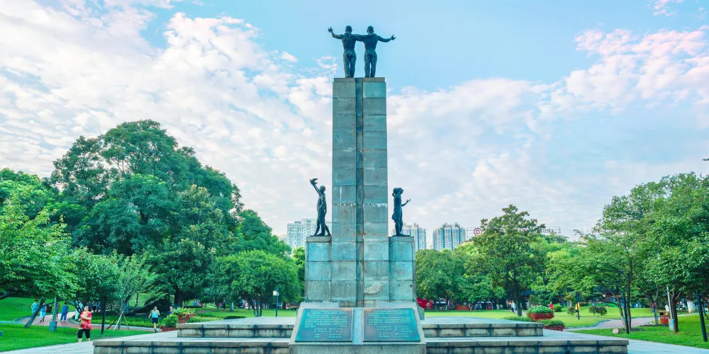 園中建有日本鹿兒島贈送的中日“友好和平”青銅群體塑像,由4組8個中日青年組成,他們昂首挺胸,嚮往未來,熱愛和平,象徵著中日兩國人民將世世代代友好下去。園中還種有櫻花、玉蘭、睡蓮等花木,每年櫻花開放的季節都會迎來很多遊客觀賞,平常也會有當地的居民在園內鍛煉。