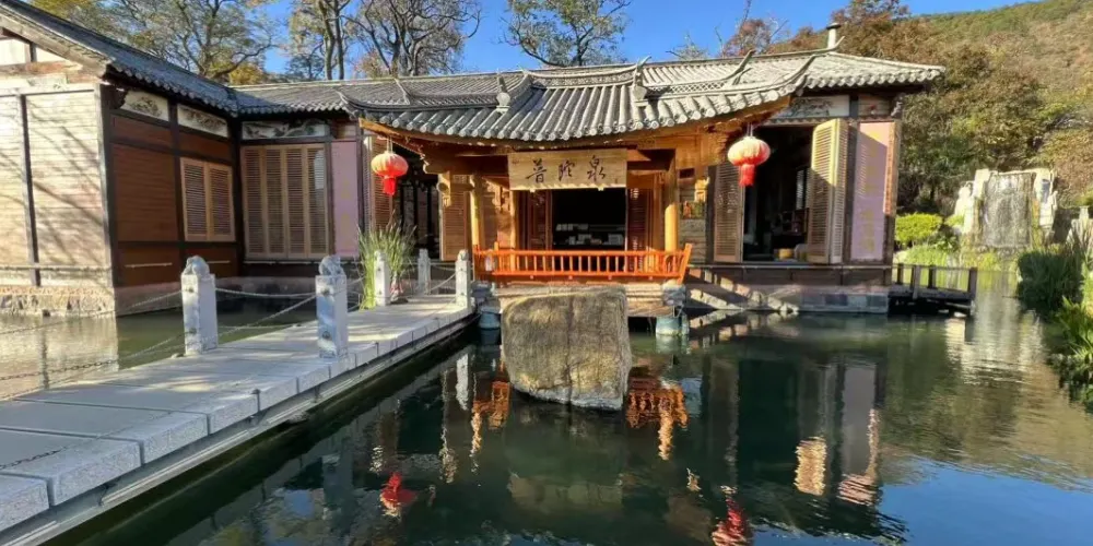 破曉時分踏入竹林環抱的「碧玉潭蒸騰的水霧常裹著滇朴落葉,泉水流過腳背時能感受細密氣泡在皮膚上綻開。池畔木亭裡,白族阿嬤用竹簸箕晾曬著採自茈碧湖的野菱角,浸泡間隙剝食幾顆,清甜恰好中和硫磺氣息。移步半山腰的「雲影池」,晨光穿透冷杉枝椏,在含鋰元素的泉面投射出粼粼光斑,偶有紅尾水鴝掠過水面,翅尖點起的漣漪驚散倒映的玉帶雲。