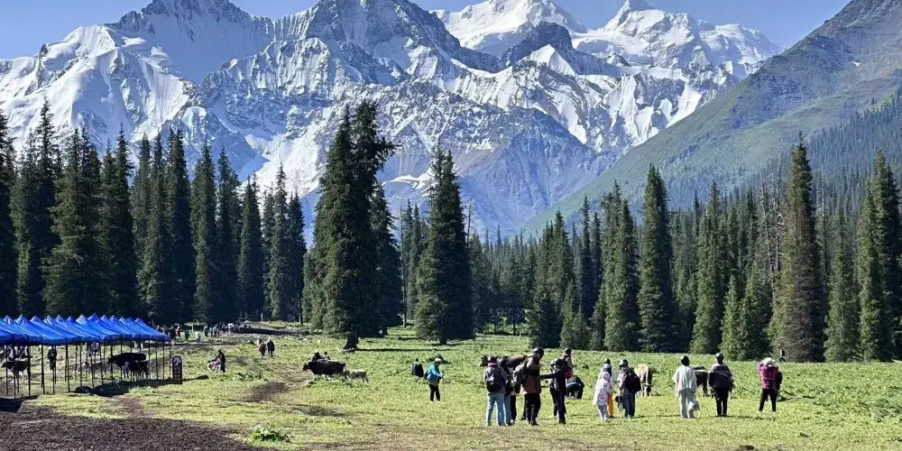 夏塔旅遊區位於伊犁哈薩克自治州昭蘇縣,是由特克斯河地區的山口、古道、古遺址、民俗和自然景觀組成的一條獨具特色的古文化旅遊區。該旅遊區將雪山、河流、草原和野花融合在一起,景色十分優美。