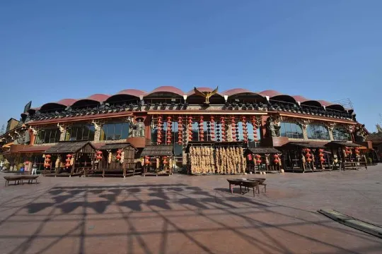 涼山民族文化藝術中心火把廣場地處邛海西北側,是2006年四川省冬季旅遊會的主會場,火把廣場以演藝中心為主,融合學術交流、展覽、休閑和娛樂為一體的多功能文化建築。火把廣場為扇形建築,東側佈置了民族文化藝術中心,是一個斜插入山體的建築,西側是文化休閑公園,為自然隆起的山體。在火把廣場的入口處,有一組九虎塑像,往裡是一組成弧形佈置的56個直徑為2米的民族文化柱羣,56根柱子表示了56個民族大團結。
