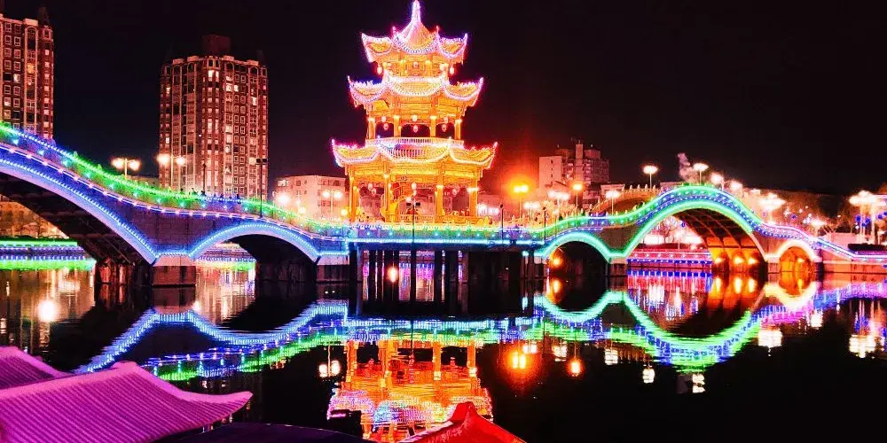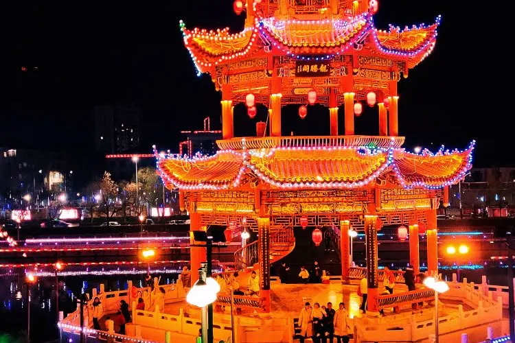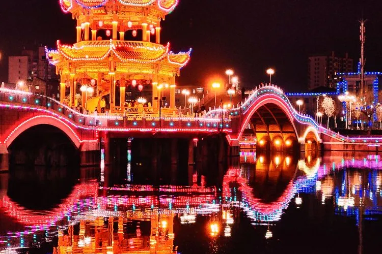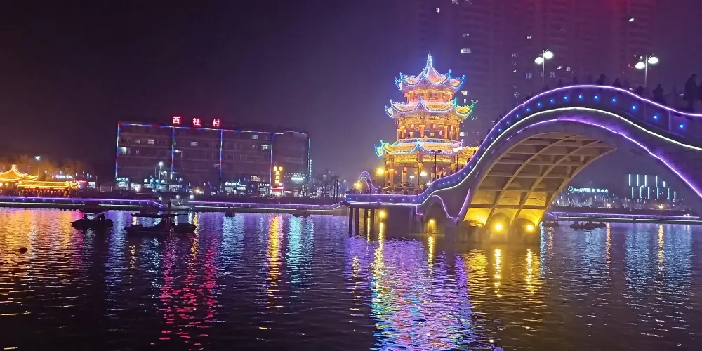 這裏景色宜人,環境優美,公園內的塔和小橋夜景尤為美麗,人很多,是市民休閑娛樂的好地方。