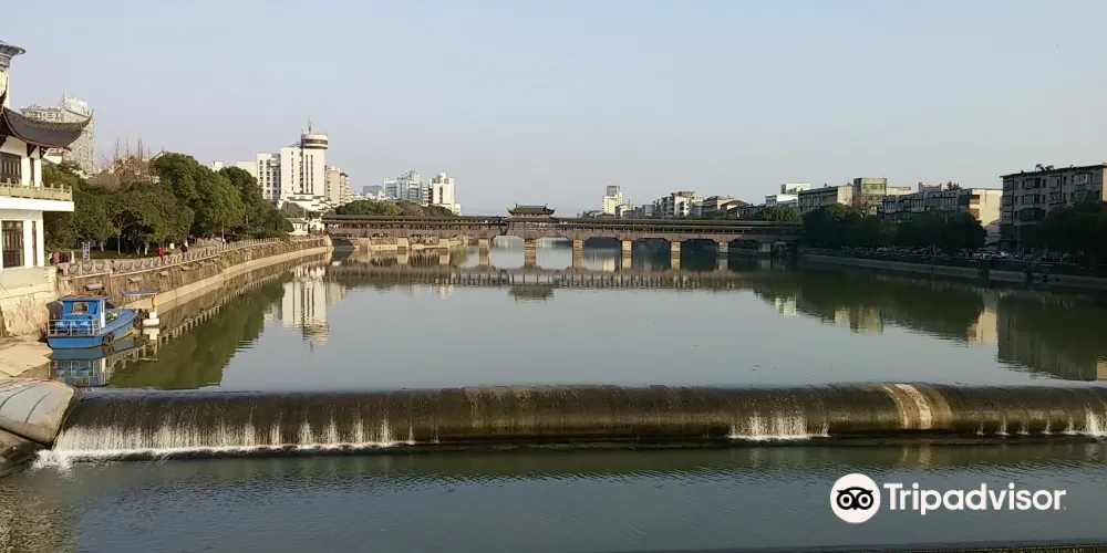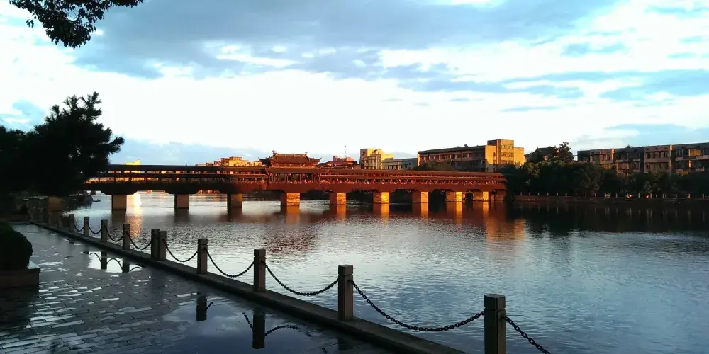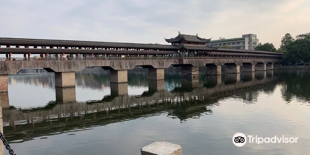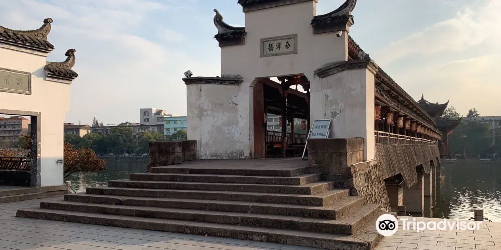 西津橋位於浙江省永康市,始建於清代,為石橋墩木結構重檐廊橋。橋樑設計新穎,宏偉壯觀,橋上有橋登可以人們休憩賞景。