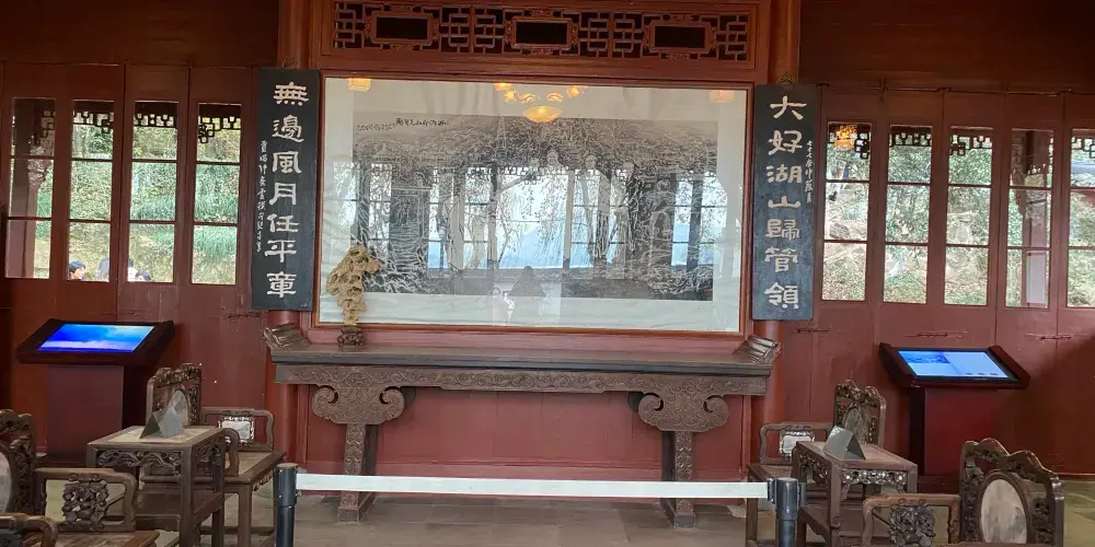 塔內每層樓都展示著一些詩文、壁畫,但大多數人登塔是為了觀景。高處的視野極佳,不僅可以欣賞西湖風景名勝區全景,還能俯瞰對面淨慈禪寺的全貌。尤其是夜晚,燈光勾勒出整個湖水的輪廓,景觀令人陶醉。