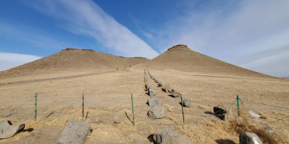 平頂山火山群位於錫張公路20餘公里處,是一處由火山噴發而形成的獨特的山。從公路上看去,這些山頂都如桌面一般平,但是到近處觀看,會發現山上佈滿了火山噴發時留下的凝灰岩塊。在平頂山觀日出日落,景色特別好。尤其是日落之時,山色在夕陽的映襯下,呈現或濃或淡的紅色,有如夢幻一般,平台落日為錫盟至景之一。