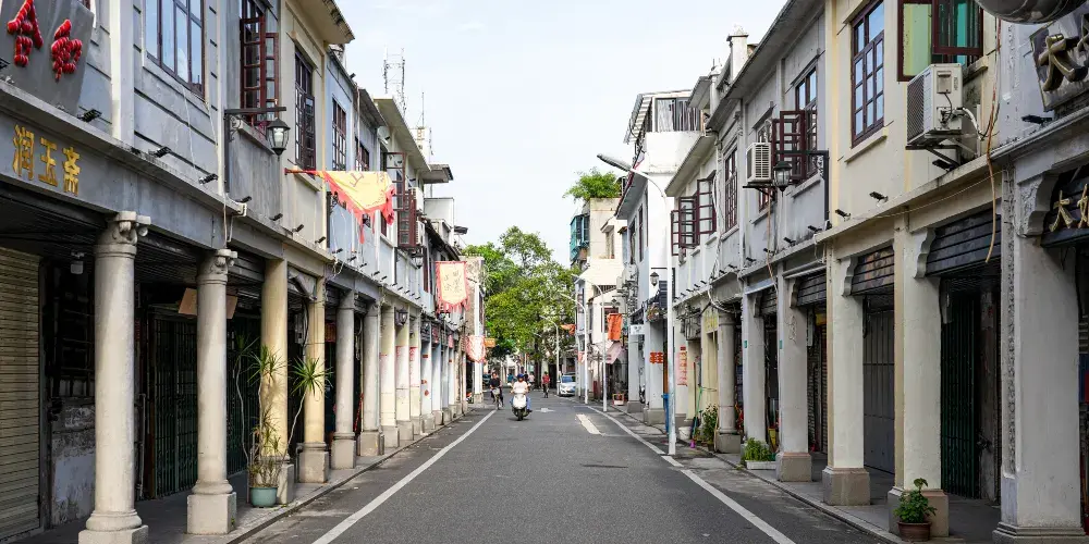 南洋風的騎樓與明清舊居宅院交織共存,形成了獨具地方特色的歷史文化街景。