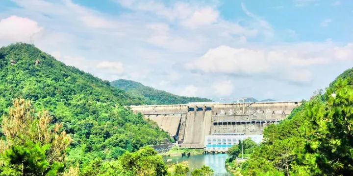 新豐江水庫大壩距河源市區6公裡,為混凝土結構,高124米,壩頂寬為5米,長度440米,是世界上一座經受六級地震考驗的超百米高混凝土大壩。溢洪段設有3孔。1997年7月11日至14日、8月9日至16日,大壩兩次開閘泄洪。泄洪時,湖水從閘奔瀉而出,伴隨著雷鳴般的呼嘯聲,捲起千堆雪,仿似一幅蛟龍鬧海圖,十分壯觀。新豐江電廠大壩是社會主義建設初期的奇蹟,是人類改造自然、趨利避害的一個典範。如果不是親臨其境,人們很難想象這麼一座百米大壩背後是一個“山中海洋”,而腳下卻有一個高樓林立、人影綽約的中等城市。