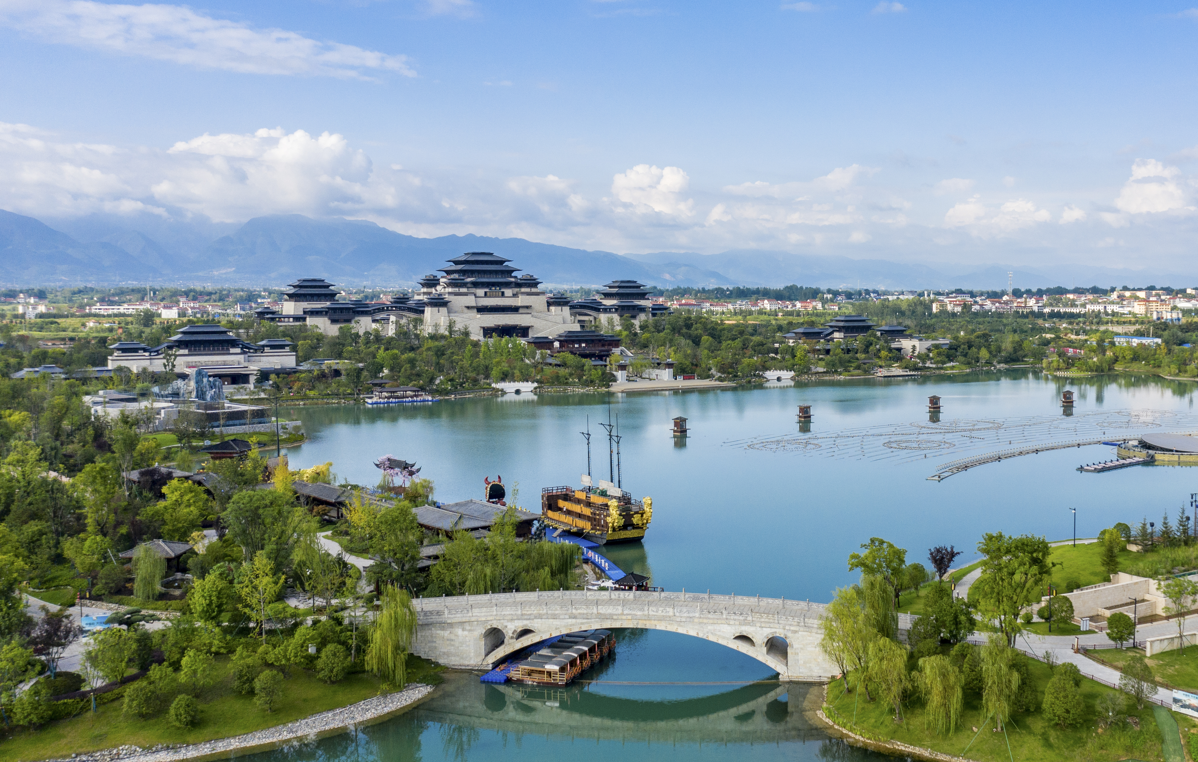 興漢勝境依漢源湖而建,以自然生態的漢水之源為根,以中華民族的漢文化之源為魂,以漢朝初興的歷史輝煌為底色,建成集漢風景點群、漢風商街群、漢風博物館群、漢風酒店群、漢風餐飲、漢風演藝等於一體的漢文化旅遊度假區,為遊客帶來雅緻、美好、快樂的漢風生活體驗。大型演藝水上真人實景演出《天漢傳奇》由知名導演沙曉嵐先生執導,通過水上投影、水中造型、水上表演、水上列陣、水中裝置等一系列與水有關的創意和視覺效果的方式,200多名演員在漢源湖水面上傾情表演,配合現代高科技的大型噴泉展示、大型實景火焰效果、激光展示及可變化扇形水幕等系統,為遊客展現出一幅漢文化的動人傳奇畫卷。