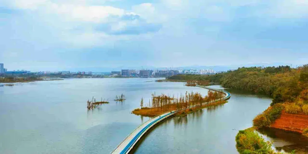 位於成都科學城地鐵站附近的興隆湖濕地公園,早已名聲在外,佔地面積5100畝,據説比杭州西湖的面積還要大一點,是天府新區的“生態之腎”。