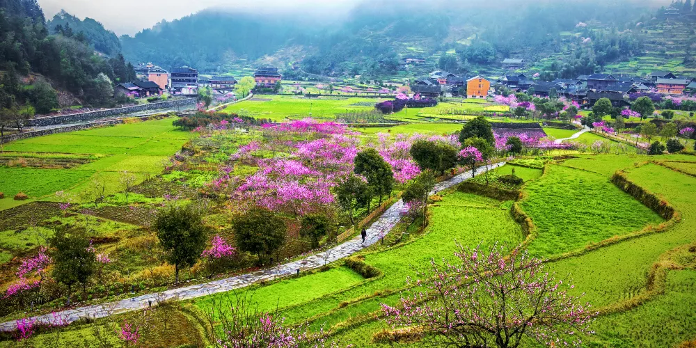 古桃花源景區佔地面積約54平方公里,包括桃源仙境、中峒梅山寺、千年紫薇、岩板梯田等景點。