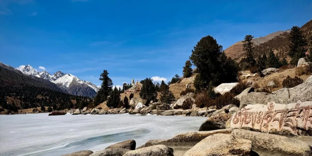 則評價新路海位於德格縣境內的雀兒山下,川藏公路側,是甘孜州著名的冰蝕湖。水源由雀兒山冰川和積雪消融供給,湖尾流出的溪流為措曲河源頭之一。新路海藏語名為玉龍拉措,“玉是心,龍是傾,拉措是神湖。新路海及周圍生態原始、完整。晶瑩的大型冰川從海拔五千米的粒雪盆直瀉湖濱草原,極為壯觀。湖泊周圍由高原雲杉、冷杉、柏樹、杜鵑樹和草甸環繞。藍天白雲、雪峯皚皚,冰川閃爍、青山融融、綠草茵茵、波光粼粼。湖岸珍禽異獸出沒,湖中野鴨成羣,魚兒遊弋。夏秋季節,山花爛漫,爭芳鬥艷,真可謂世間仙境。湖邊有眾多的瑪尼石,刻工粗獷有力。如果有心,可以沿湖邊漫步,這個湖泊面積很大,在嚮導的帶領下,可繞湖一週,走開幾步,就能聽見浪濤聲和鳥鳴,是個靜心的好去處。