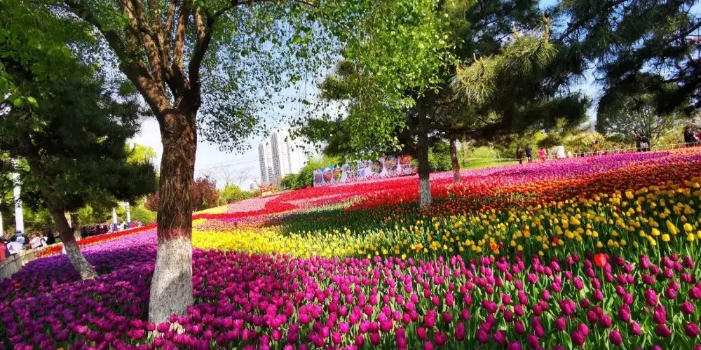 每到春季,園內樹木成蔭、百花盛開,園中漫步,特別是沿湯河西岸演示陽光與植物生長關係的白鷺亭,猶如一行展翅的白鷺,與大湯河的潺潺流水、湯河東岸的紅飄帶遙相呼應,形成清新宜人、景色優美的環境。