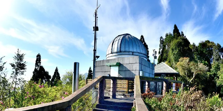 天文臺半圓形的屋頂可以360度旋轉,屋頂開了一個大天窗,透過天文望遠鏡可以從這裡窺探宇宙的奧妙。這座天文臺是由臺大物理系架設,屬於研究用的天文望遠鏡,這裡海拔1800公尺,四周都是森林,入夜以後沒有光害,可以很清楚的觀看星空哦!