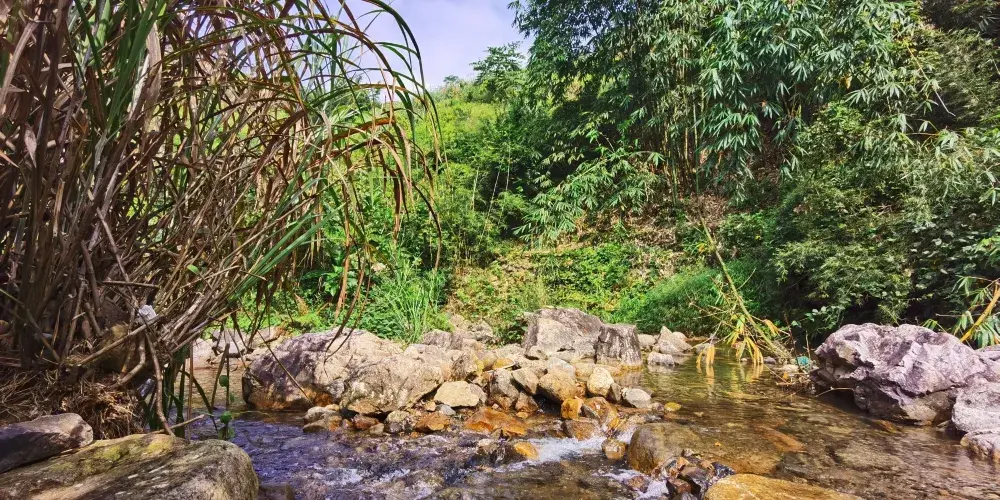 則評價三椏塘幽谷,地處五指山景區,屬亞熱帶山地雨林。現開闢一條溯溪小道貫穿幽谷的中部,形成奇特的景觀有幽谷翠竹、亞熱帶山地雨林、千年古藤、飛流仙橋、通天岩洞、碧水潭、幽谷灘、古炭窯、三椏塘大壩等。景區內沒有太多的人工修飾,一切看起來都很原始,這也讓景區內的綠色植物大量的被保存下來,環境幽靜、空氣十分的清新,是一個天然大氧吧。