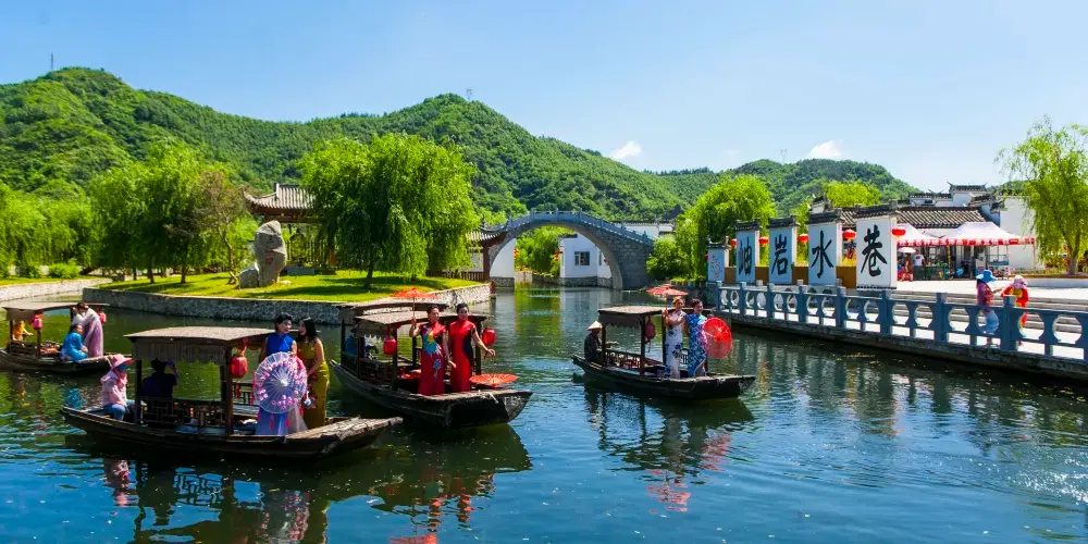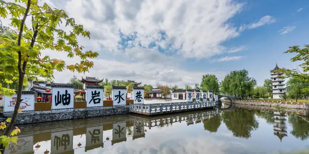 岫巖水巷風景區位於素有“中國玉都”之稱的岫巖縣境內,以江南建築為形,以國學文化為魂,把江南的水鄉風光帶到北方來。水巷有三種形式,一是河街並列的水巷,二是有河無街的水巷,三是兩街夾河的水巷。