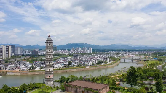 岩寺文峰塔俗稱水口塔,建於明嘉靖23年,高67米,六角七層。此塔為裡人鄭佐(雙溪)所建。他是明代進士,官至貴州右參政。他為建此塔確實費了心,從設計到落成花費15個春秋。僅塔心木一項,就訪遍了全縣諸山。這株高13丈的巨材,從伐倒到運來岩寺,花了整整三年。為鑄造塔頂的葫蘆寶瓶,他參考了南京報恩塔、紹興大禪寺塔以及泗州塔多處圖形。
