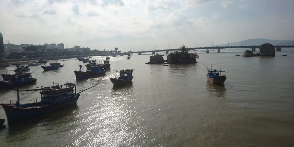 從位於小山上的婆那加塔往下看,能看到芽莊的碧藍海港。