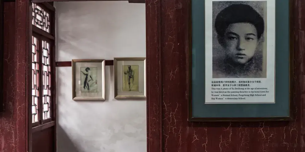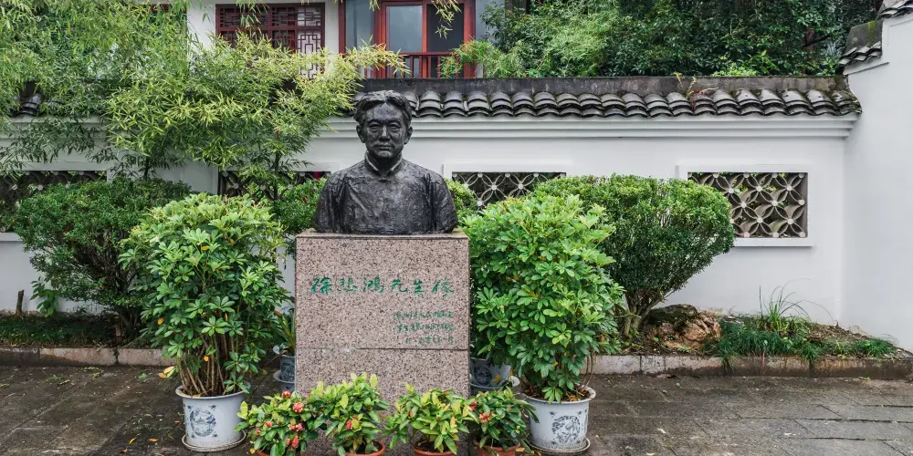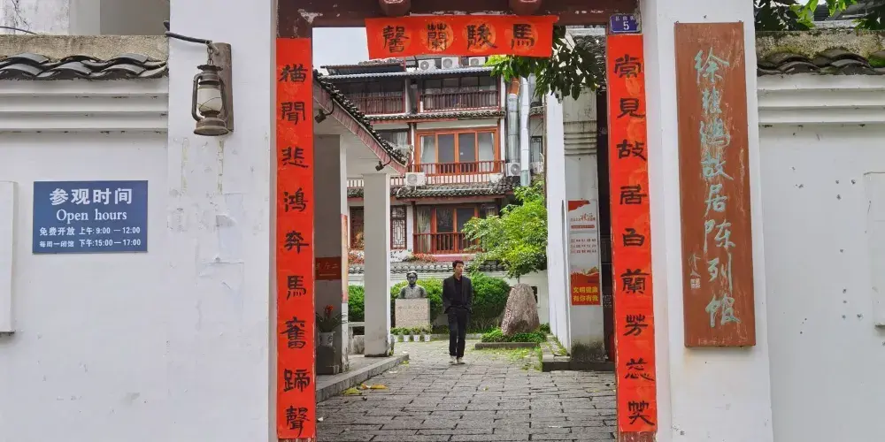 徐悲鴻故居是1935年到1938年徐悲鴻避居廣西時李宗仁先生所贈送。故居外圍白粉牆、小青瓦,還有略帶黃顏色的簷口,其門樓下面懸有吳作人先生手書的“徐悲鴻故居陳列館”之牌匾,一邊還鑲嵌著“徐悲鴻故居”之大理石碑刻。房屋為磚木結構,三進堂小屋,院內有一高大玉蘭樹,花香四溢。