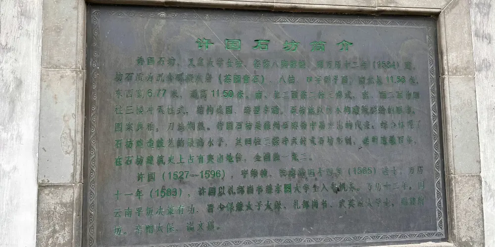 許國石坊,俗稱八腳牌樓。建於明萬曆十二年十月(公元1584年),距今有四百年的曆史。