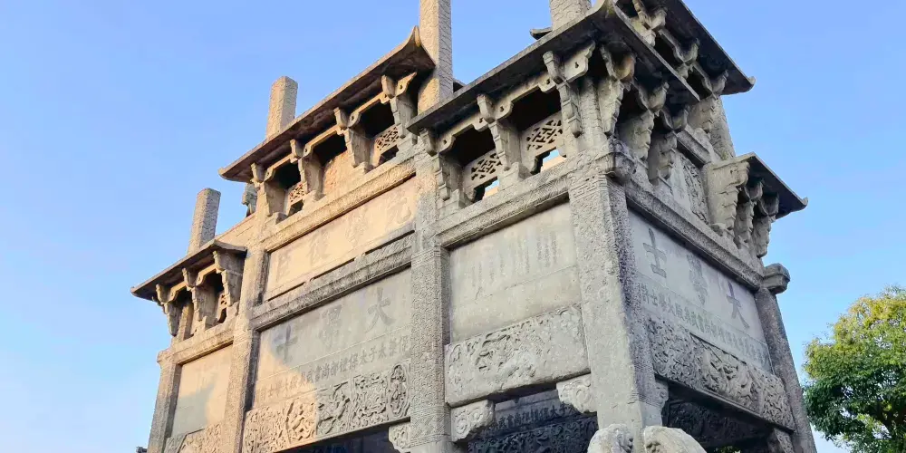 許國石坊雕飾相當精緻,有彩鳳珍禽,遊龍走獸。十二隻倚柱石獅,雄踞於石礎之上,形態逼真,栩栩如生。