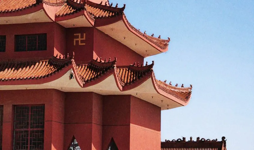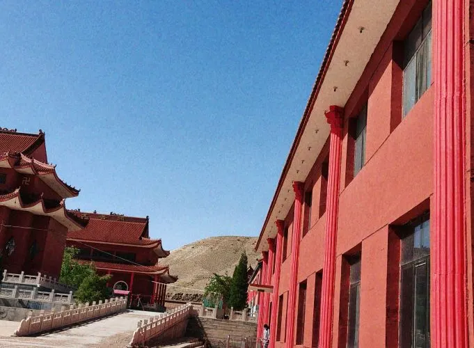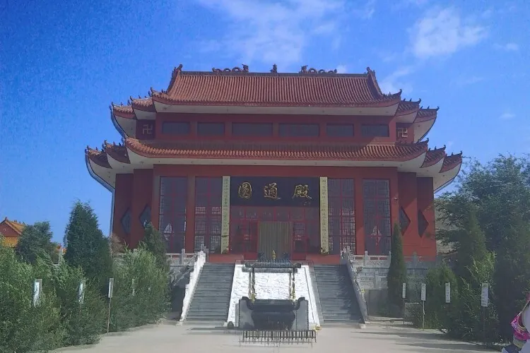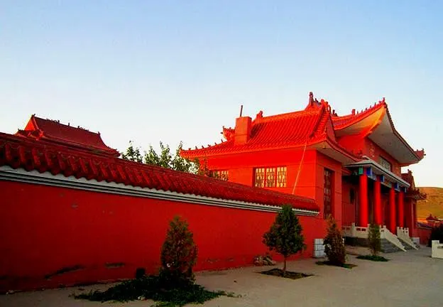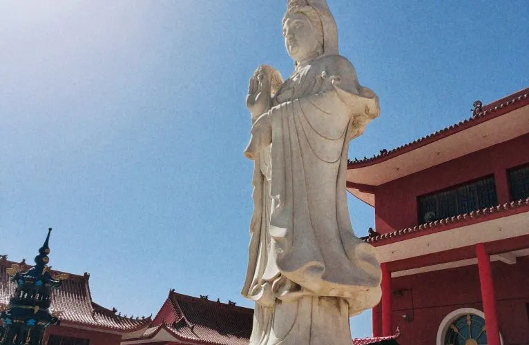 這是一個佛教寺廟,建築很宏偉,周圍的環境也很不錯,有很多人來朝拜。