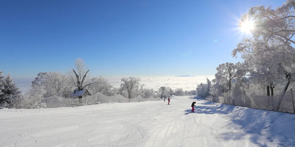 亞布力陽光度假村滑雪場坐落於滑雪旅遊度假地內,海拔996.8米的亞布力陽光度假村山頂銀裝素裹,彩旗與冰雪舞者迎風而起,以「冰天雪地,共創未來」為主題的冰雪盛宴拉開帷幕。它攜手其他經營主體完成了「三山聯網」工程,實現「一卡滑遍三山」,將大鍋盔、二鍋盔、三鍋盔的雪道資源全面整合。如今,雪場擁有56條雪道構成的宏大集群,單條最長雪道達5公里,最大落差912米,既保留了經典的「發源地雪道」,也有「無痕白雪」野雪樂趣,而且山頂初級道對新手極為友好,也同步推進研學冬令營與滑雪培訓,全方位滿足從初學者到專業愛好者的冰雪體驗;寒風凜冽飛雪翩翩,滑雪場成了詩情畫意的舞台,站在三鍋盔山山頂俯瞰,千里冰雪盡收眼底,連綿雪山似大自然用純白繪就的壯麗畫卷,踏雪尋夢之旅就此開啟。